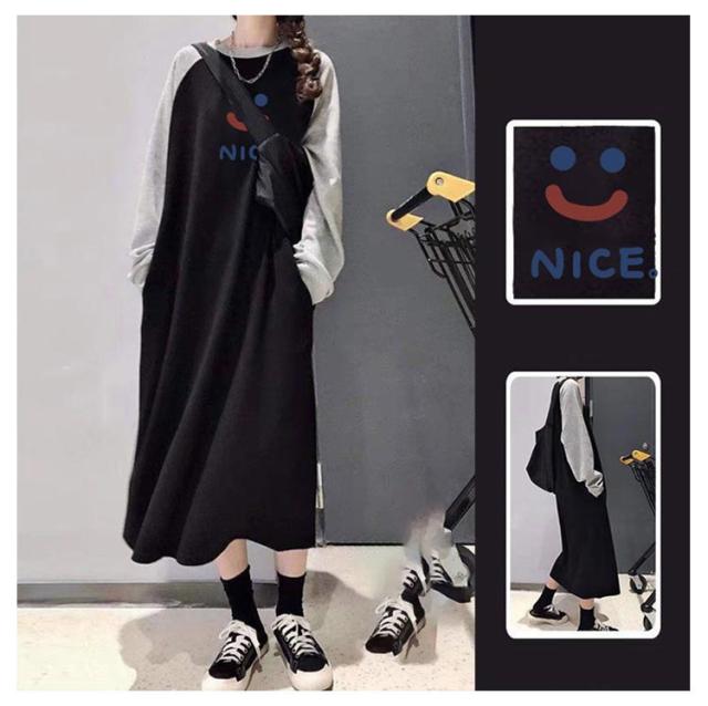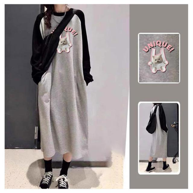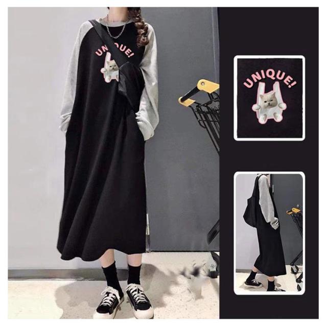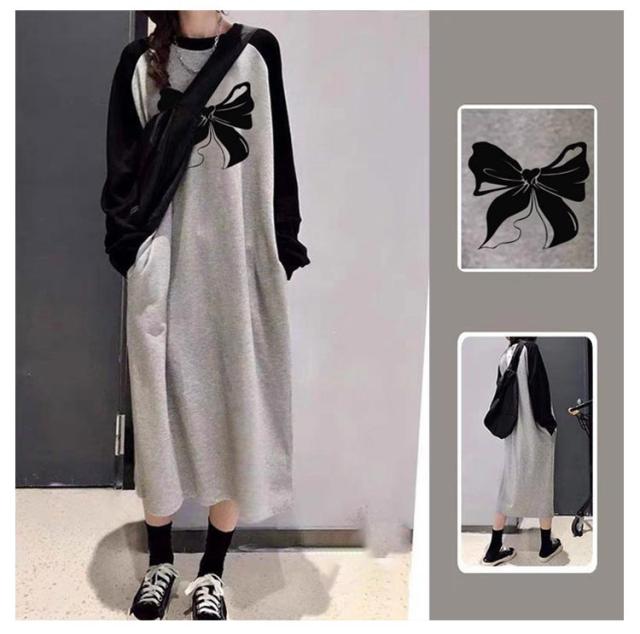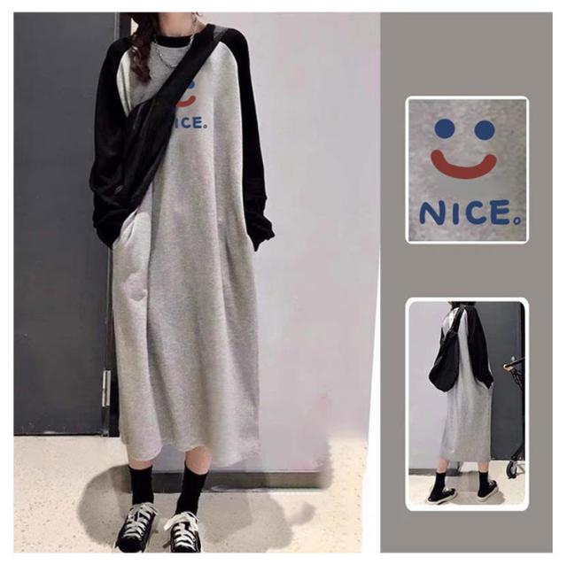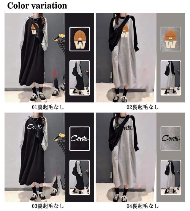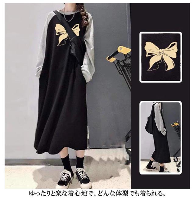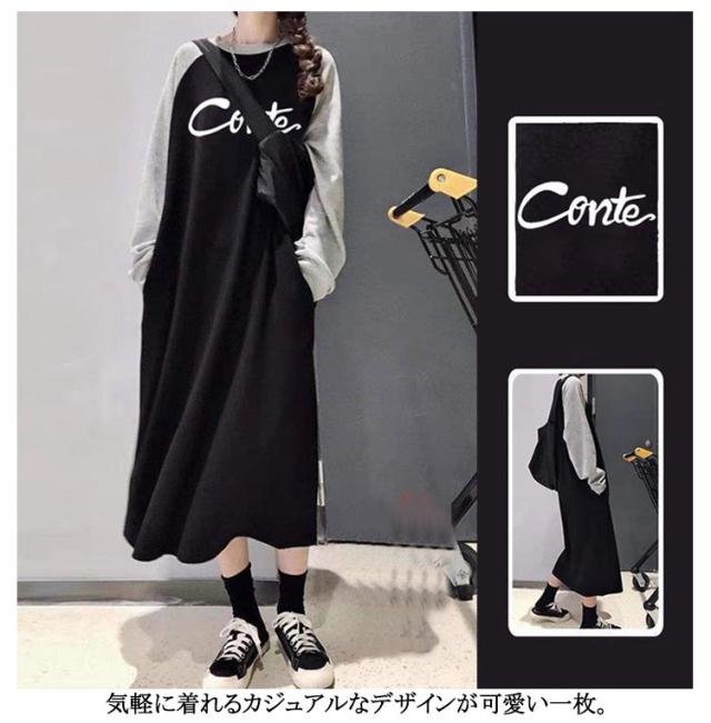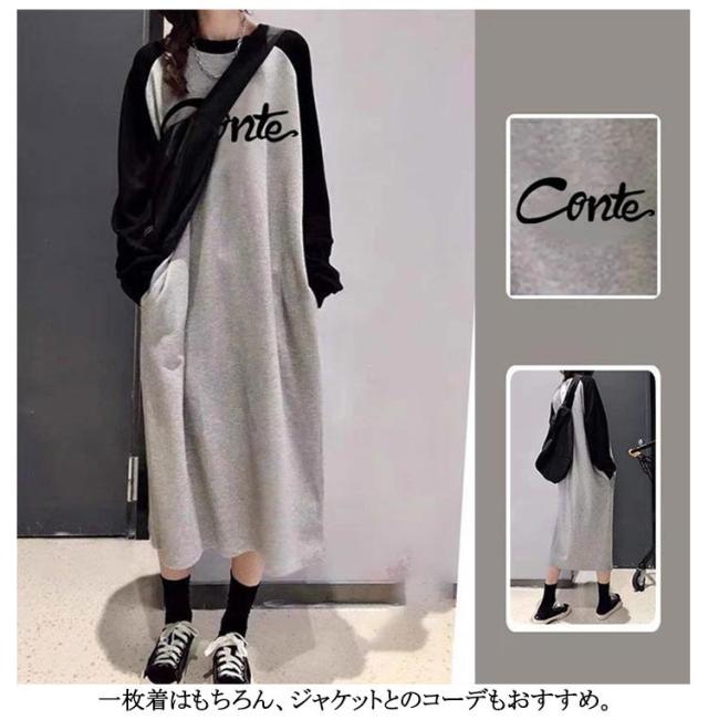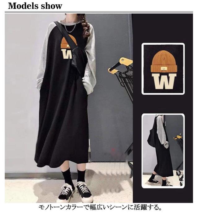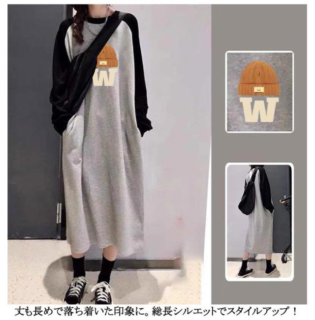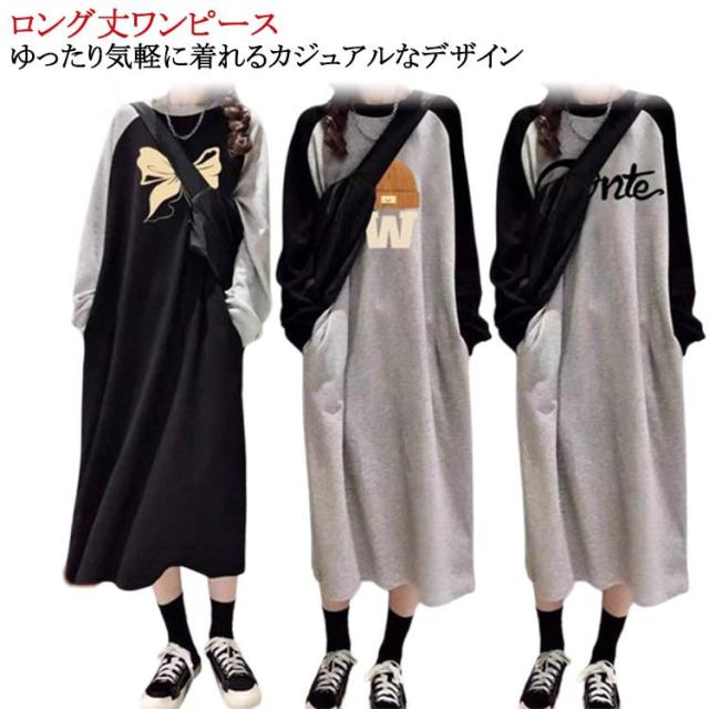 ロング丈 ワンピース シンプル レディース 長袖 ゆったり トレーナー 配色 送料無料 ワンピ 送料無料 カジュアル 体型カバー 春 秋
