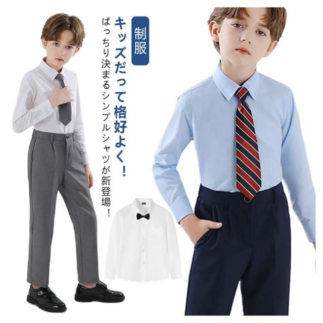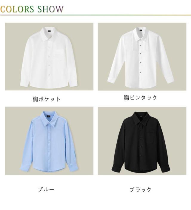 スクールシャツ キッズ シャツ 子供 制服 スクール ブラウス 長袖 綿 男の子 女の子 コットン ピンタック 蝶ネクタイ ネクタイ ワイシャツ Yシャツ カッターシャツ 白シャツ 通園 通学 小学校 入学式 入園式 卒業式 発表会