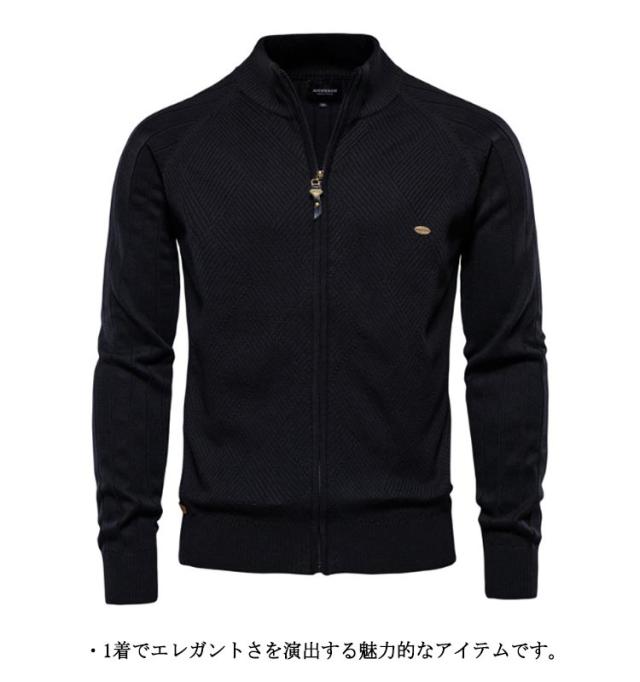 アウター ゴルフウェア メンズ ニット ジップアップ ジャケット ニットジャケット 長袖 ゴルフ ハーフジップ カーデ ニットジャケット フルジップアップ カーディガン スリム 綿 コットン スポーツ 秋