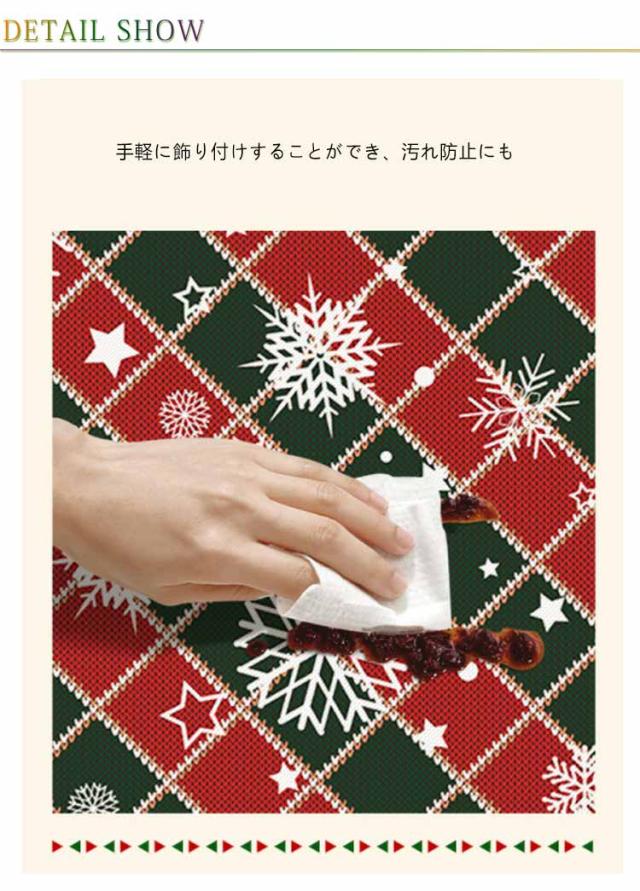 | ・クリスマスの食卓を彩るテーブルクロス ・手軽に飾り付けすることができ、汚れ防止にも◎ ・PVC素材でサッと拭くだけでお掃除も簡単な、撥水・防水仕様のテーブルクロスです。 ・カフェ・キッチン・パーティーなど、幅広いシーンで使えます。 | |