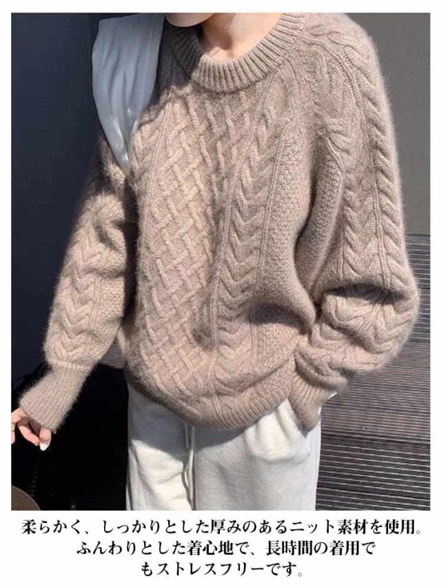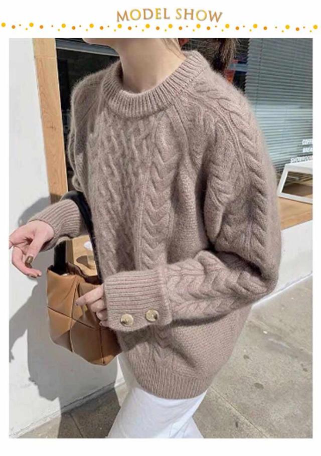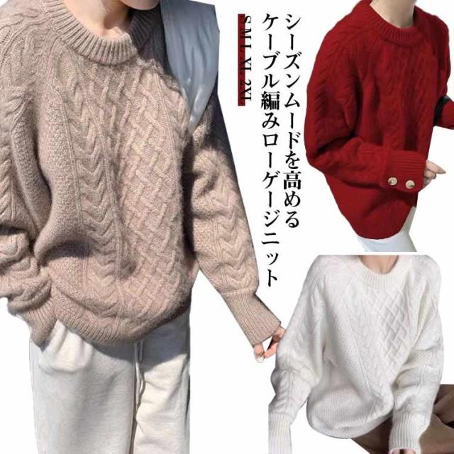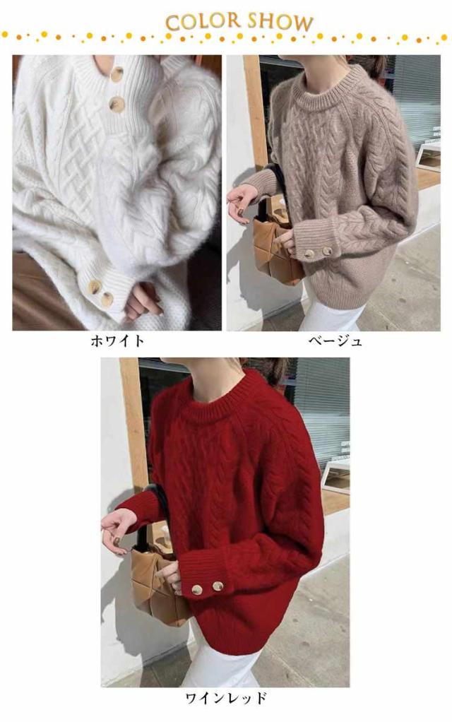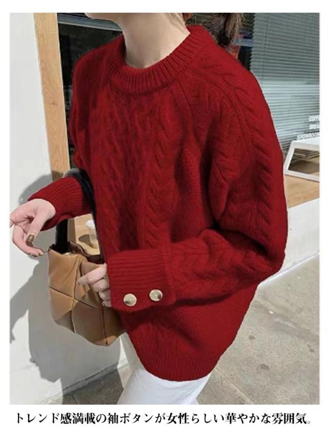 トップス あったか セーター ニットプルオーバー ニット きれいめ 袖ボタン クルーネック 厚手 秋冬 ケーブル編み ゆったり ニットトップス ケーブルニット ニット 大人可愛い おしゃれ 大きいサイズ 韓国 30代 40代 50代 通勤 カジュアル かわいい