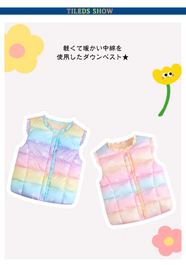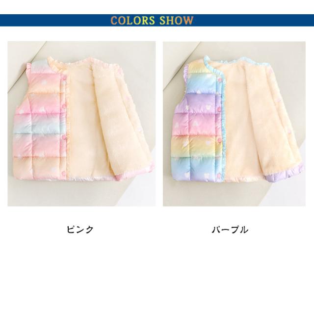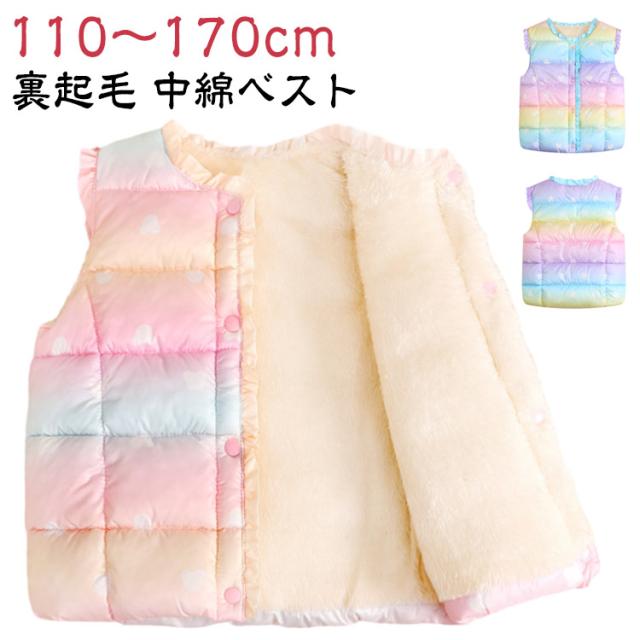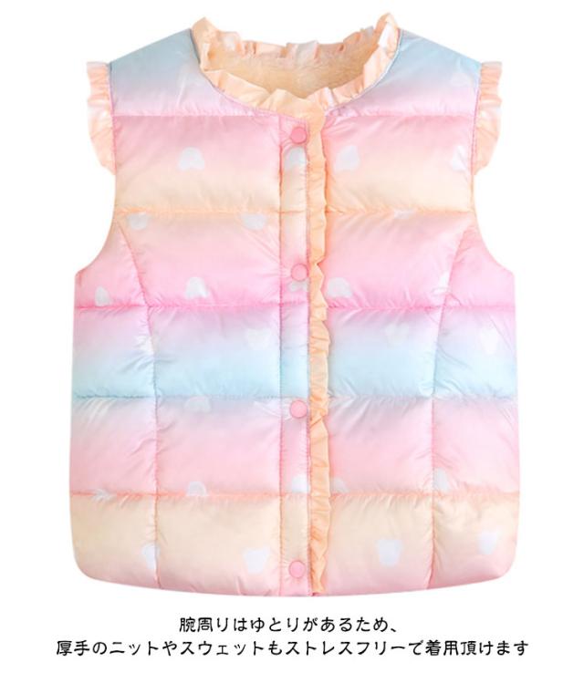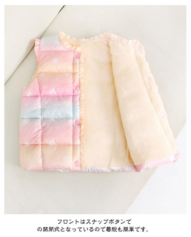 キッズ 中綿ベスト 暖かい ボリューム ベビー 女の子 アウター ジュニア おしゃれ 子供服 可愛い 裏起毛 コート ダウンベスト インナーベスト 100 あったか 通学 こども服 110 通園 グラデーション 防寒 キッズ 120 130 140 150 160