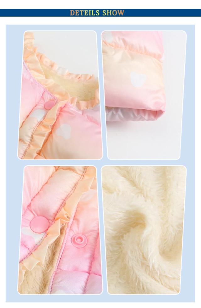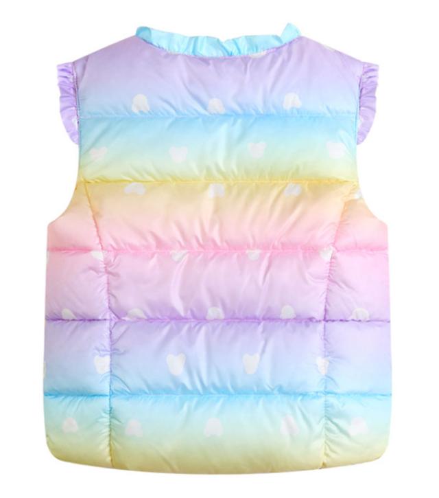| 【中綿ベスト】【裏起毛】【110〜170cm】 軽くて暖かい中綿を使用したダウンベスト★ フードなしのダウンベストなので肌寒い時期のお出かけにピッタリ! 可愛いグラデーションデザインが人気!これ一枚でいつものコーディネートがワンランクUP! たっぷりの中綿でボリューム感があり、寒い季節でも暖かく着用頂けます フロントはスナップボタンでの開閉式となっているので着脱も簡単です。 腕周りはゆとりがあるため、厚手のニットやスウェットもストレスフリーで着用頂けます | |