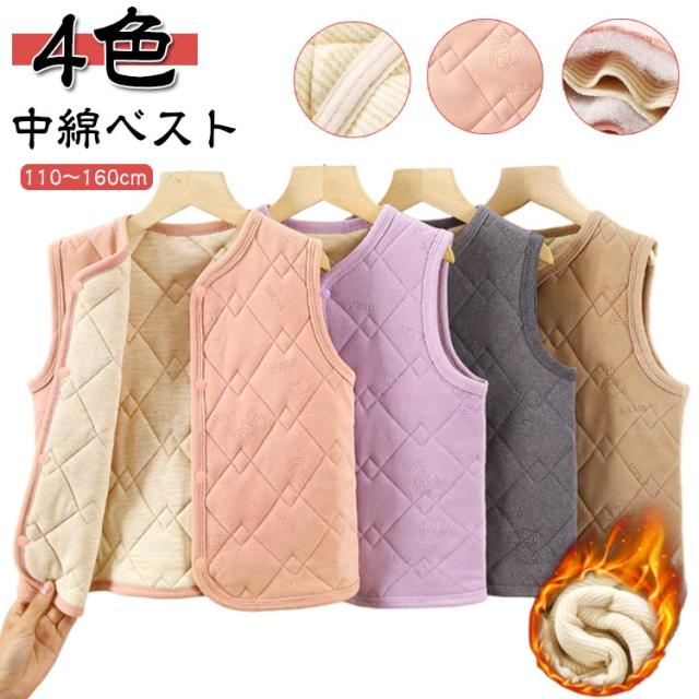 | 【110〜160cm】【中綿ベスト】【4色】 秋冬大活躍する中わたベスト。寒気から大切なお子様を守る◎ 体をふんわりと柔らかく包み込まれ、暖かくて着心地抜群。 前開きボタンで着脱も楽チンです♪ 中綿が入っているので暖かくパジャマの上から羽織って湯冷め対策にも使える! | |