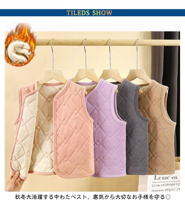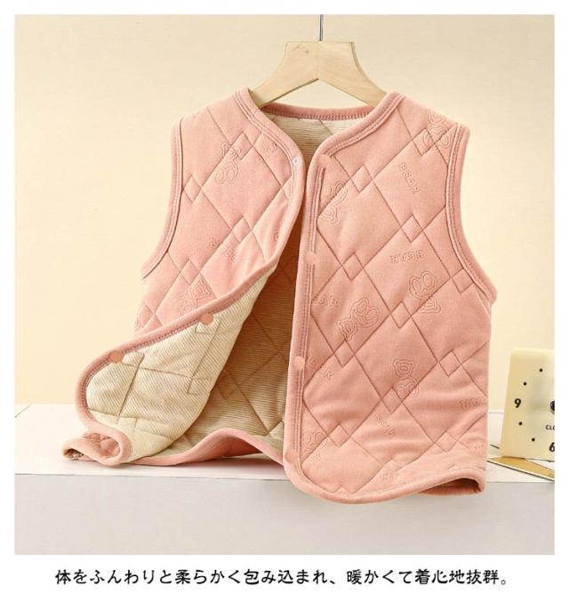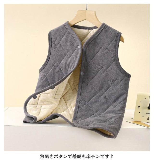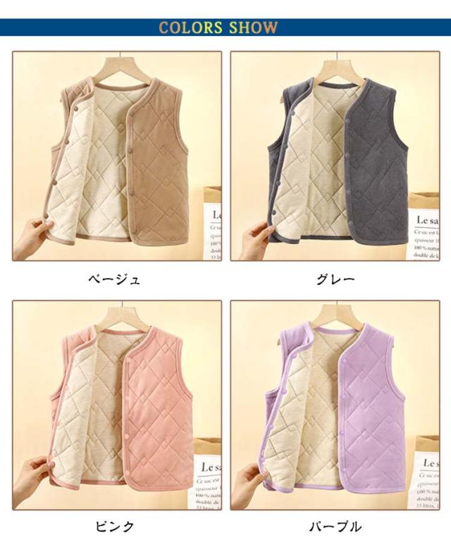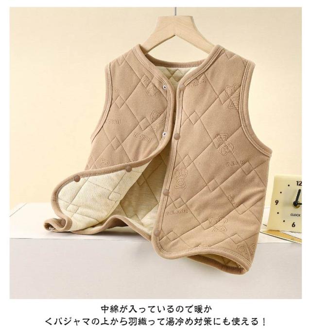 軽量 ベスト キッズ Vネック 女の子 ノースリーブ 厚手 暖かい インナーベスト インナーベスト アウター 秋冬 羽織り 子供服 防寒 冬服 袖なし 子供 あったか 中綿 保温 男の子 ジュニア 前開き 前ボタン スナップボタン シンプル 無地
