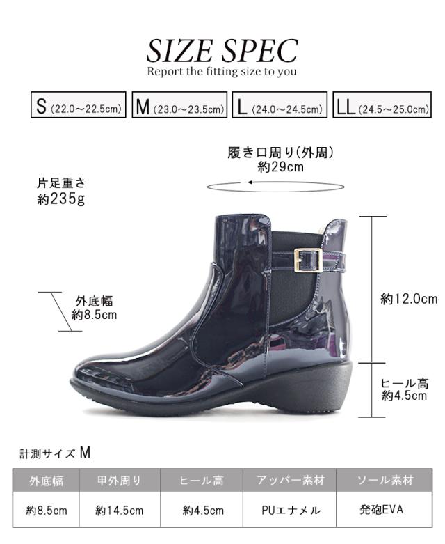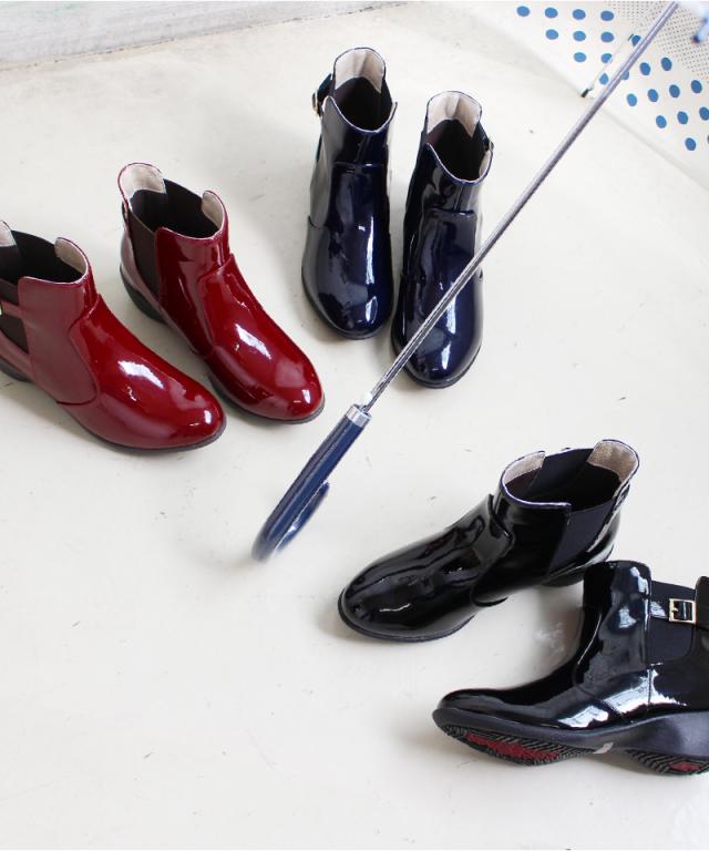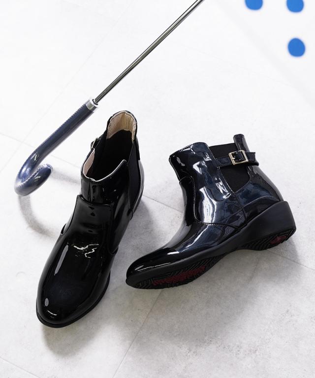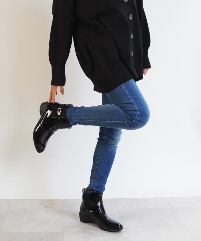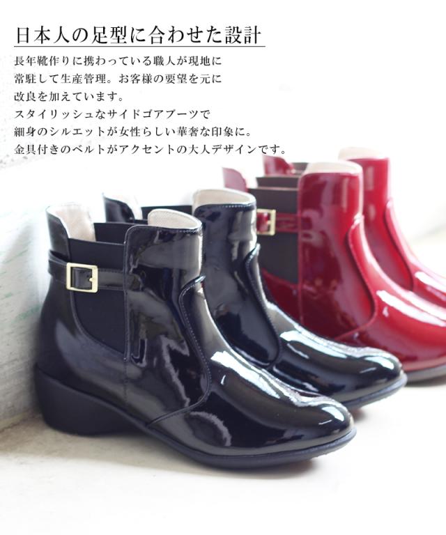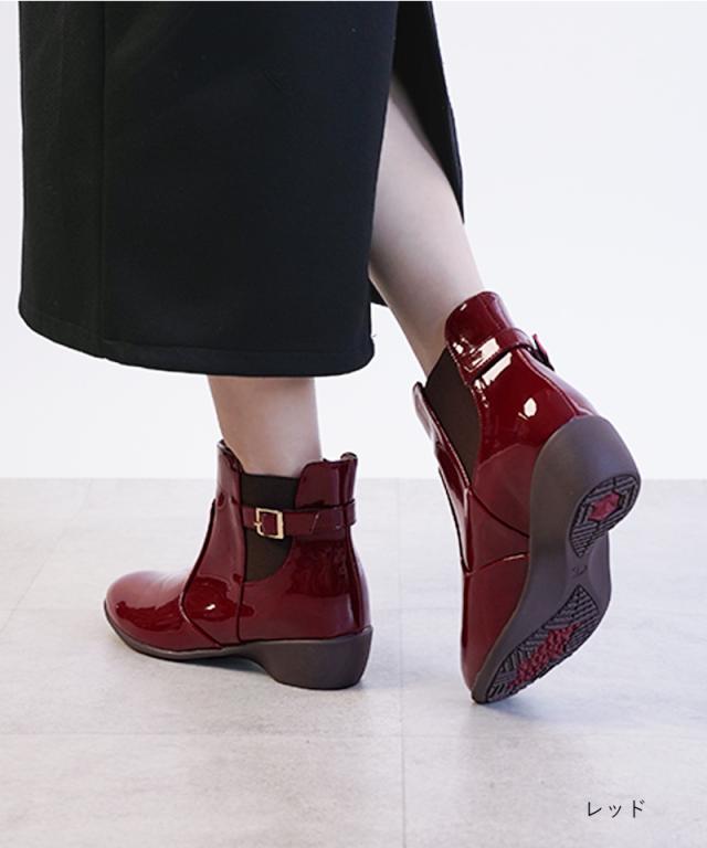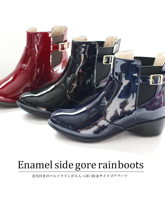 ブーツ エナメルサイドゴア レインブーツ レディース ショート 4cm ヒール サイドゴア 防水 雨天兼用 エナメル 歩きやすい 履きやすい 楽ちん シンプル 美脚 スタイルアップ ウエッジソール 定番 黒 ブラック 軽量 S〜LL