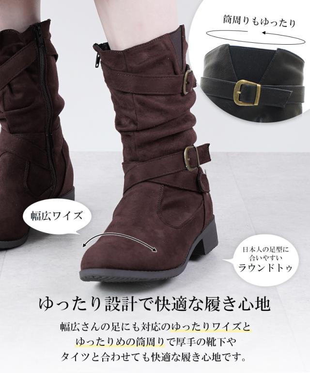 エンジニアブーツ レディース クロスベルト ショート 防滑 ぺたんこ ルーズ アメカジ 太ヒール 黒 疲れない ミドル ハーフ丈 くしゅくしゅ フラット 歩きやすい 秋冬 3cm ローヒール 甲高 幅広 ワイド 楽ちん S M L LL