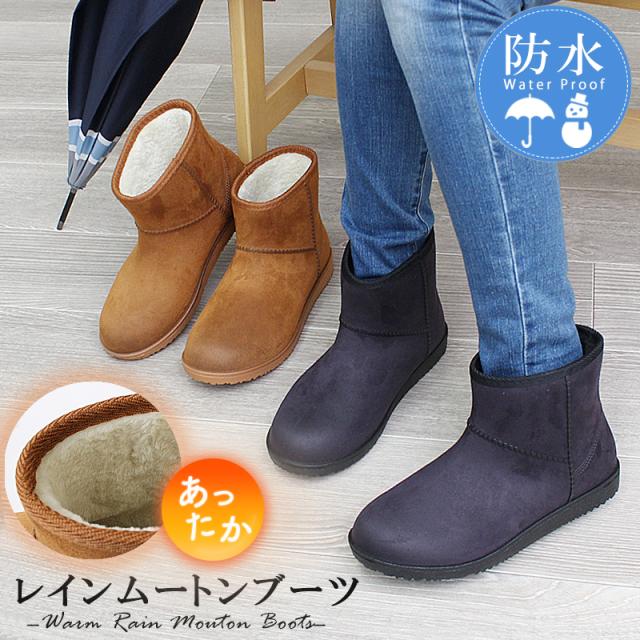 レインムートンブーツ 雨天兼用 防水レインブーツ あたたかムートン ブーツ 完全防水 ぽかぽか起毛裏地 防寒 アンクル丈 長靴 おしゃれ 秋冬 雪 長靴 レディース S〜LLサイズ 黒 ブラック キャメル