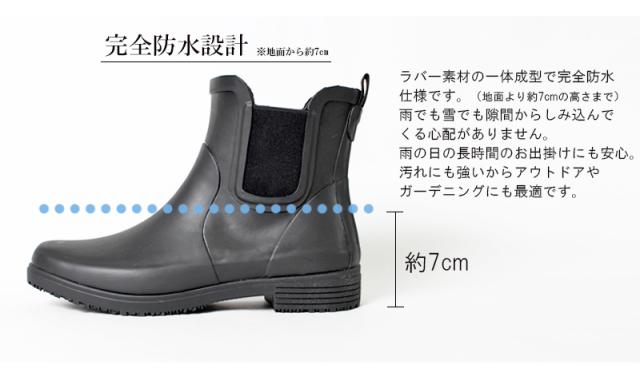 ・ラバー素材の一体成型で完全防水仕様です。(地面より約7cmの高さまで)雨でも雪でも隙間からしみ込んでくる心配がありません。雨の日の長時間のお出掛けにも安心。汚れにも強いからアウトドアやガーデニングにも最適です。