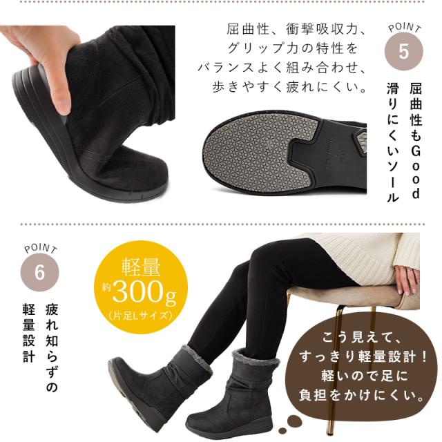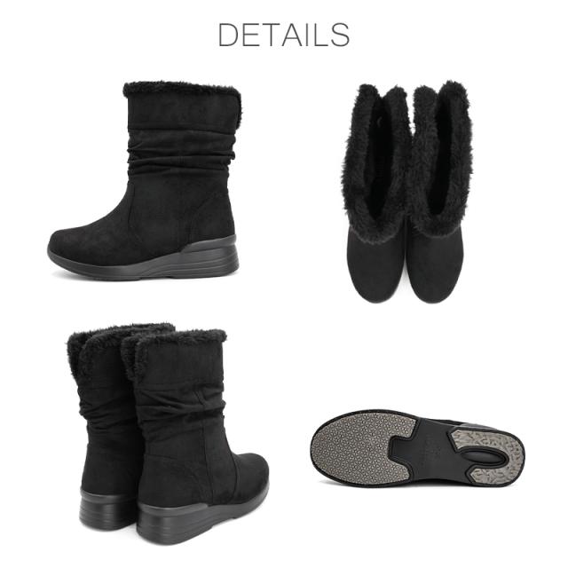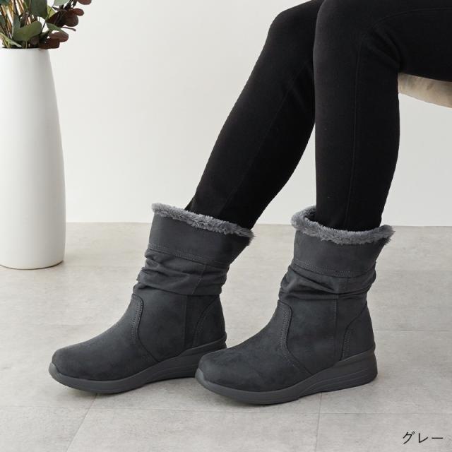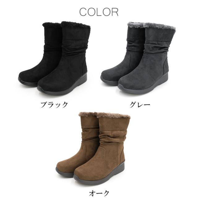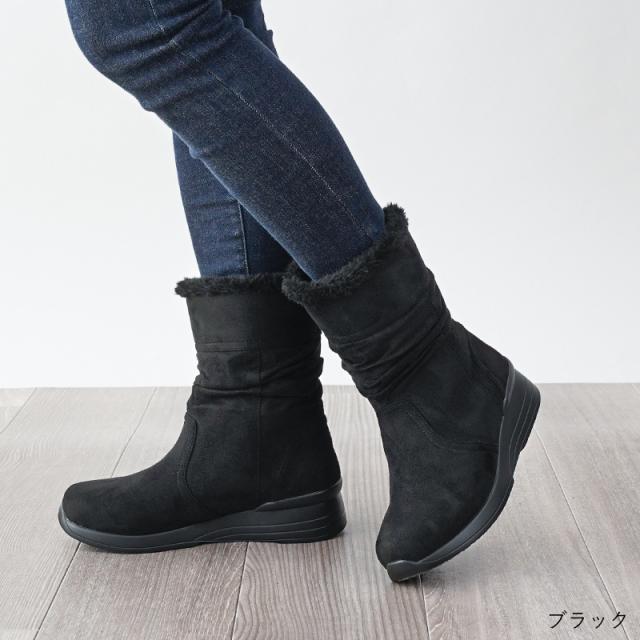 あったか 防水 ボア ブーツ 3.5cmヒール ミドル丈 レディース 裏ボア くしゅくしゅ 幅広ワイズ EEEE 4E 滑りにくい 防寒 レイン 吸湿発熱 クッション インソール 歩きやすい 疲れにくい 走れる 秋 冬 ブラック グレー 黒 S M L LL 雨 雪