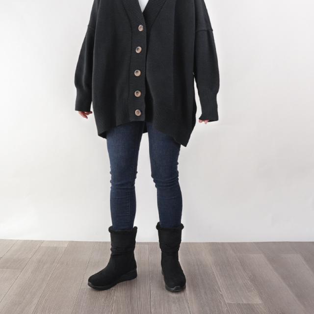 ・履き口から筒部分が保温性のあるボア素材になっていて、寒い日のお出かけにぴったり。