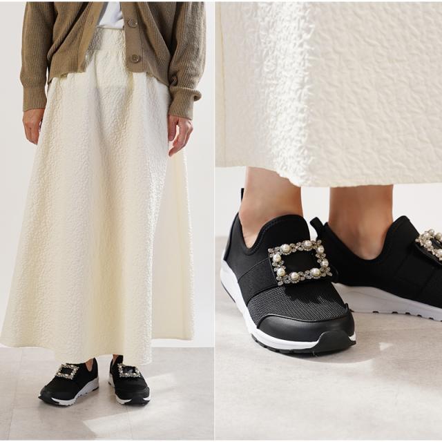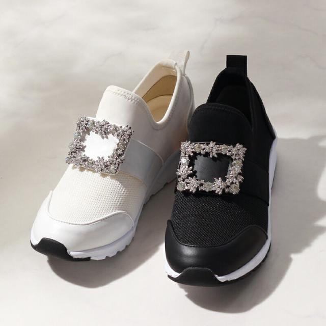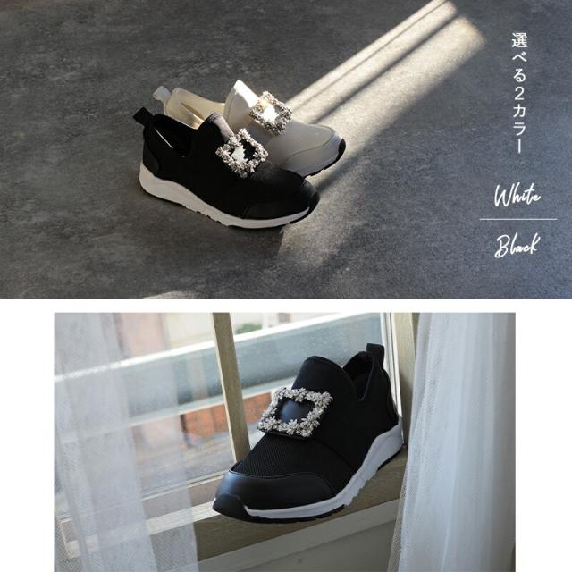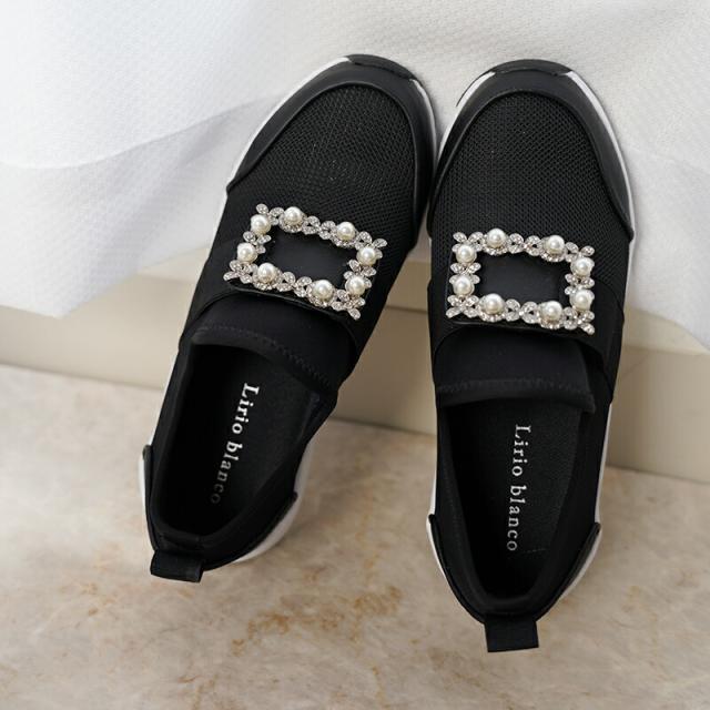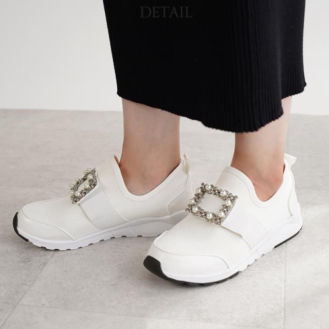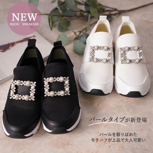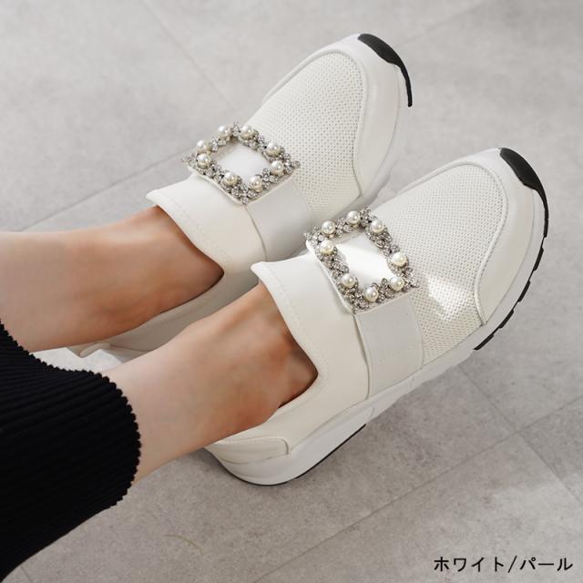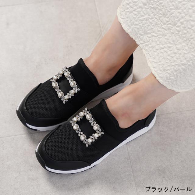 スニーカー ビジュー パール レディース 黒 ブラック 白 ホワイト 靴 バックル オシャレ かわいい 歩きやすい 疲れない シューズ メッシュ 軽い 春 夏 秋 冬 人気 楽ちん 上品 エレガント 大人 きらきら