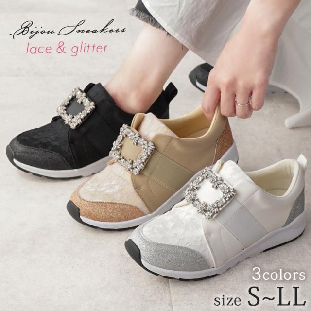 スニーカー ビジュー レディース きれいめ ダッドスニーカー 黒 ブラック スリッポン 履きやすい 歩きやすい 白 ホワイト 靴 バックル オシャレ かわいい 疲れない シューズ メッシュ 軽い 春 夏 秋 冬 人気 楽ちん 上品 大人 きらきら 花柄 レース