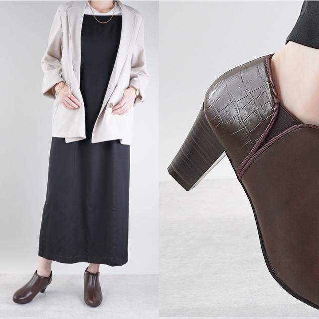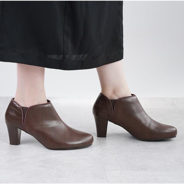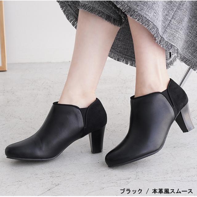 ブーツ 6.5cmヒール レディース ショートブーツ ブーティ ALETTA 究極のプレーンブーティ 日本人女性向け足型 ブラック 黒 靴 甲高 幅広 外反拇趾 アレッタ 歩きやすい 履きやすい 痛くない 秋 冬 スムース スエード