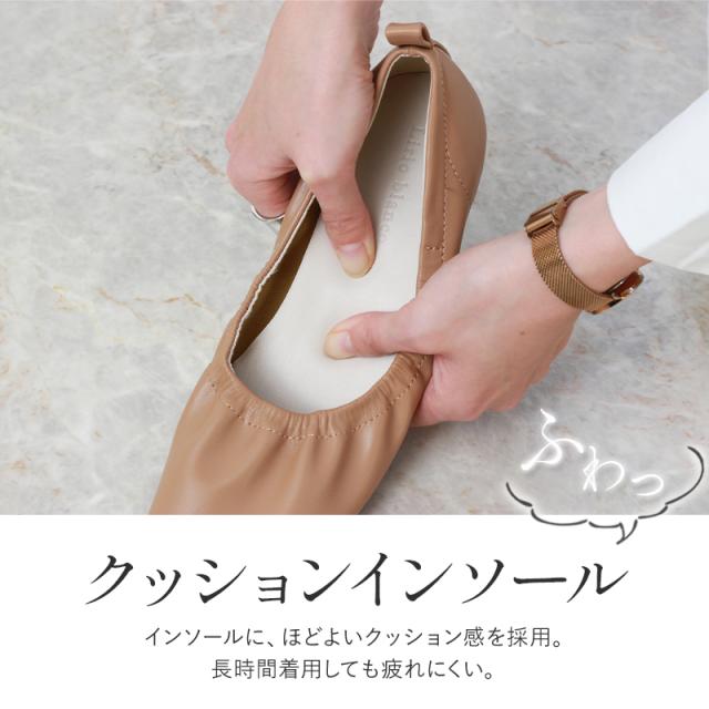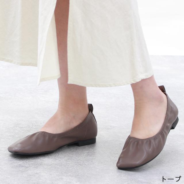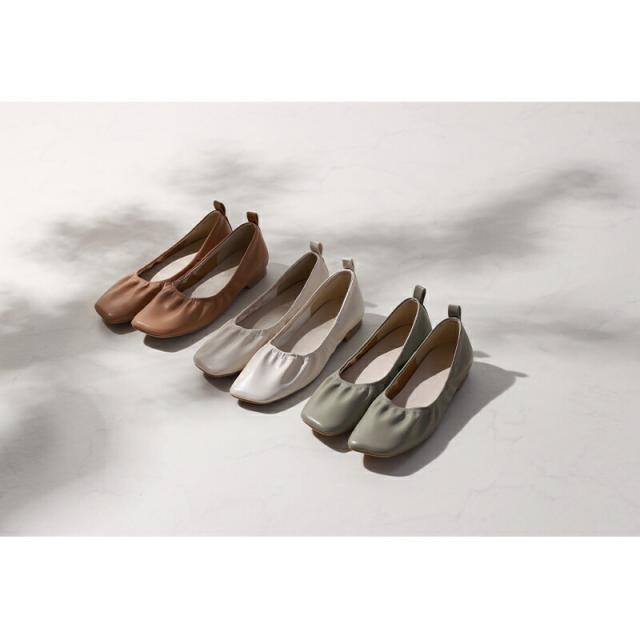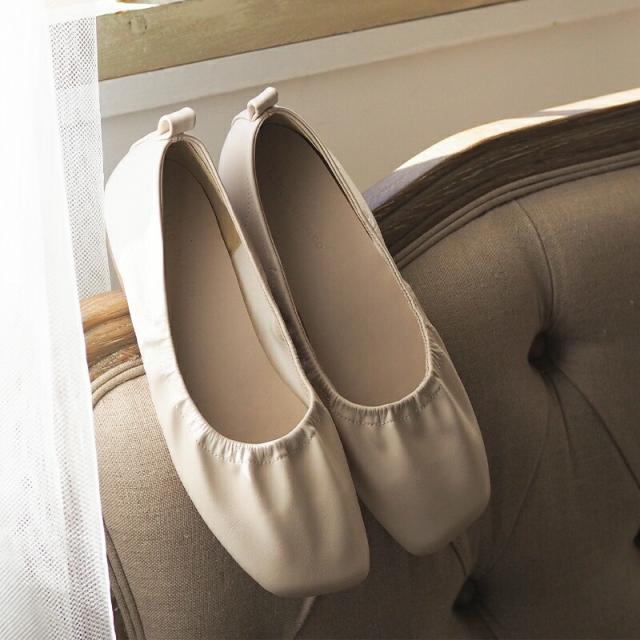 ・ギャザーが施された、女性らしさと履き易さを兼ね備えたフラットシューズ。