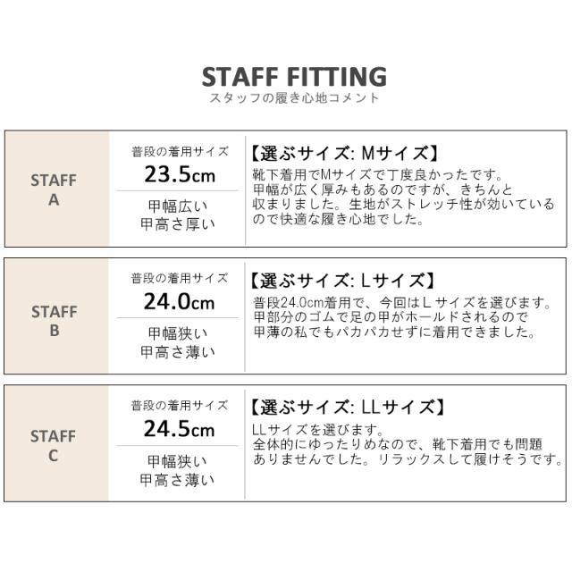 ・伸縮性抜群の生地と履き口ゴムで足全体を優しくホールド。