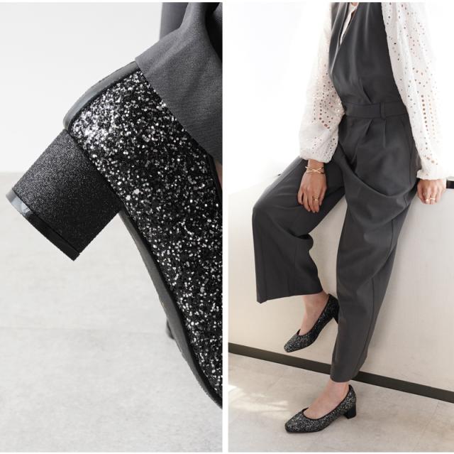 美脚チャンキーヒール・クッション中敷・ノンスリップソール・同色共巻ヒール・甲高幅広 対応