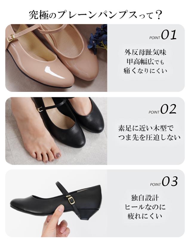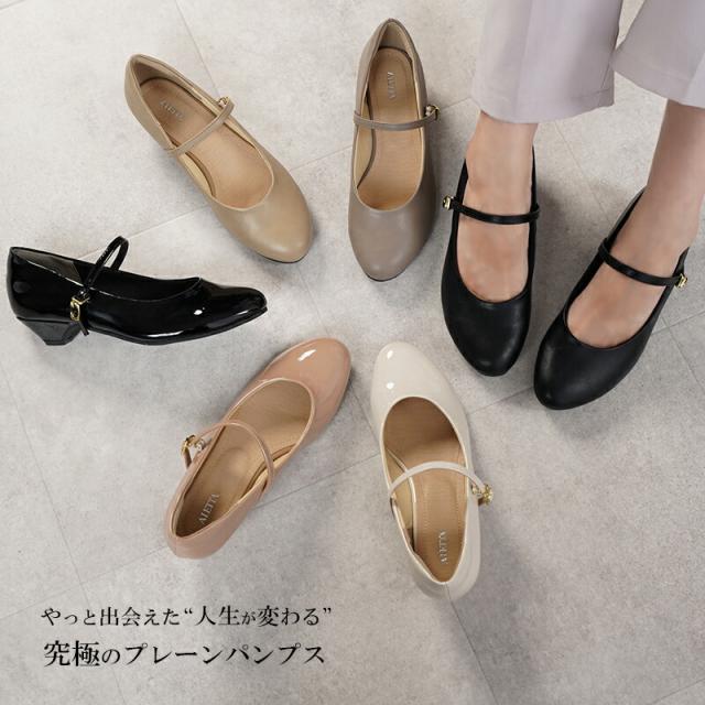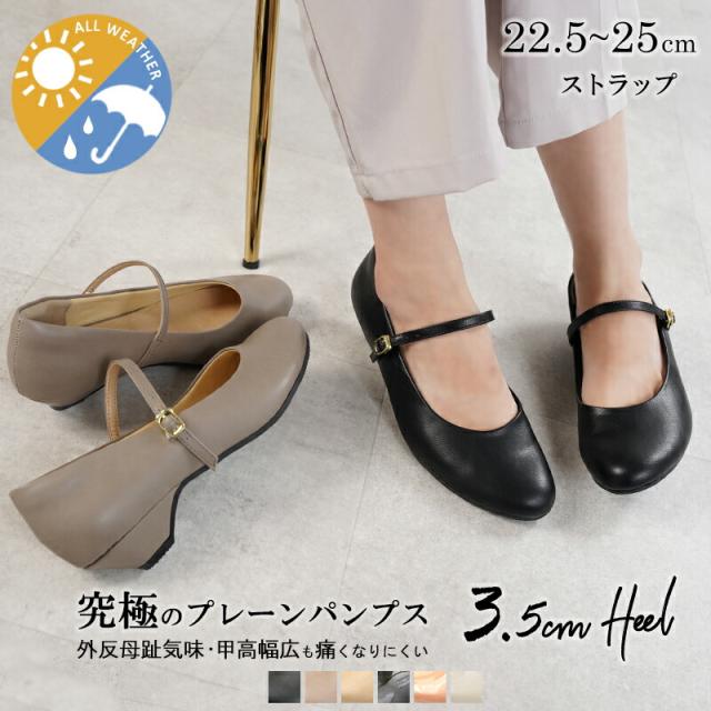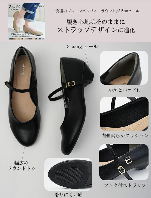 パンプス 痛くない 幅広 走れる 結婚式 黒 ぺたんこ 防水 ラウンドトゥ 3.5cm レイン レインシューズ 太ソール ローヒール 痛くない 幅広 走れる 外反母趾気味 甲高 黒 ブラック リクルート レディース 究極のプレーン アレッタ 3cm 結婚式 柔らかい 雨 送料無料 ALETTA