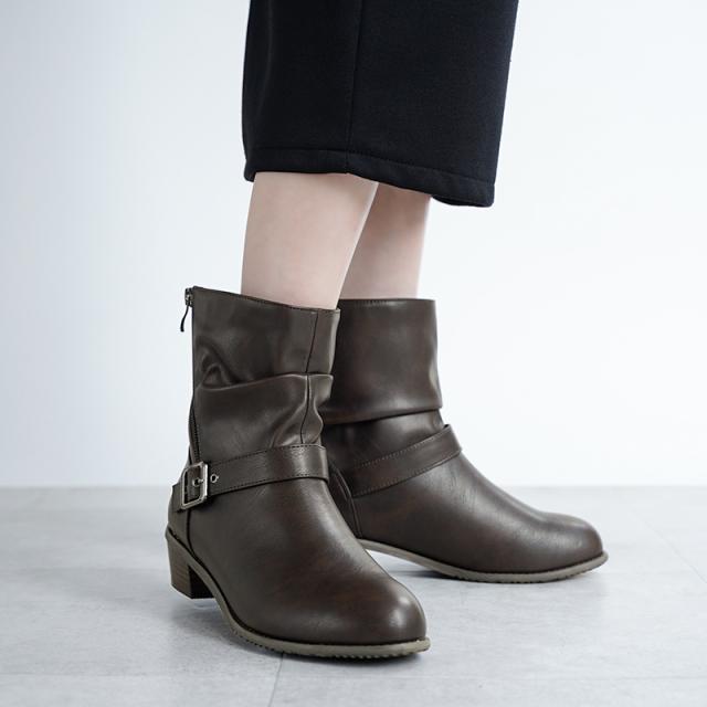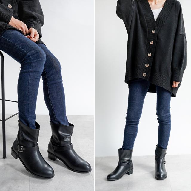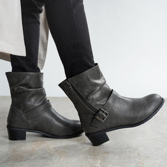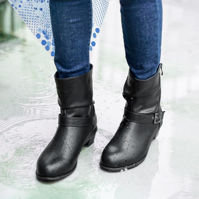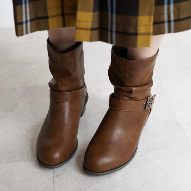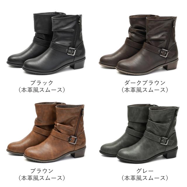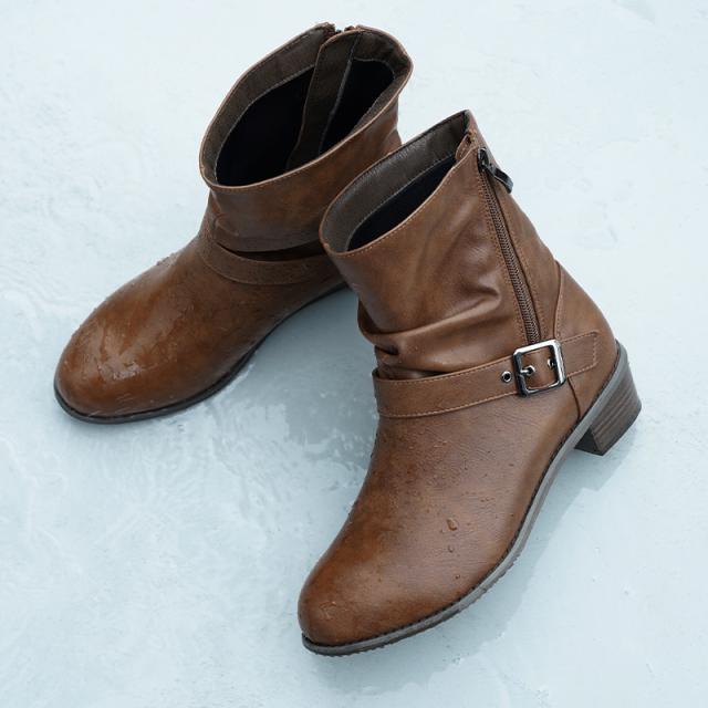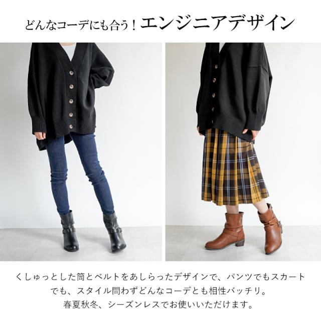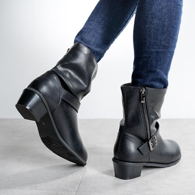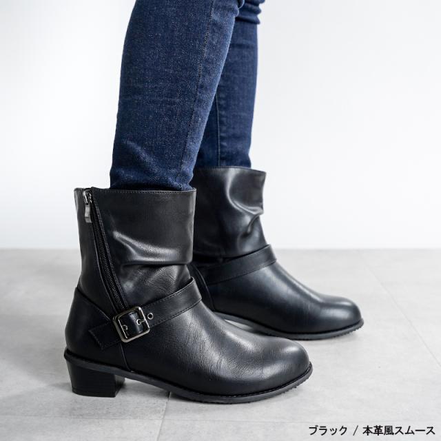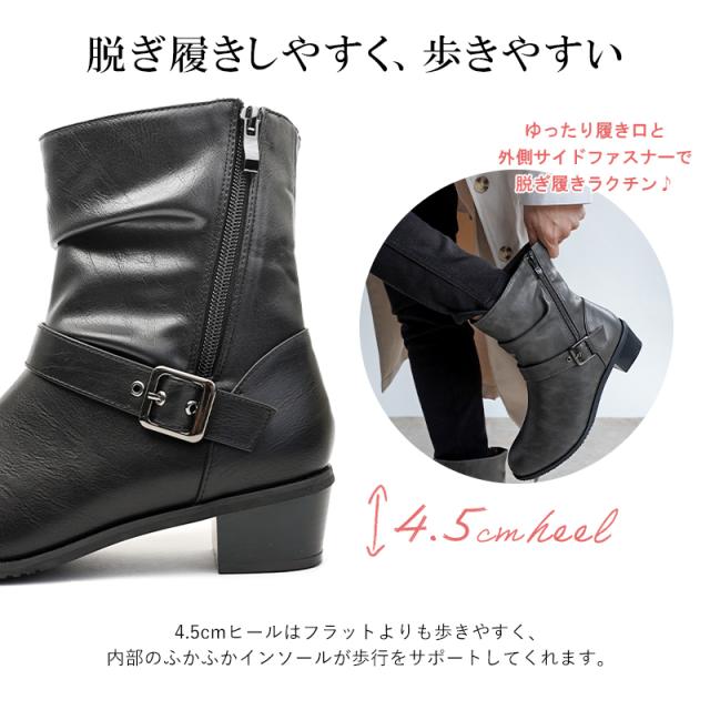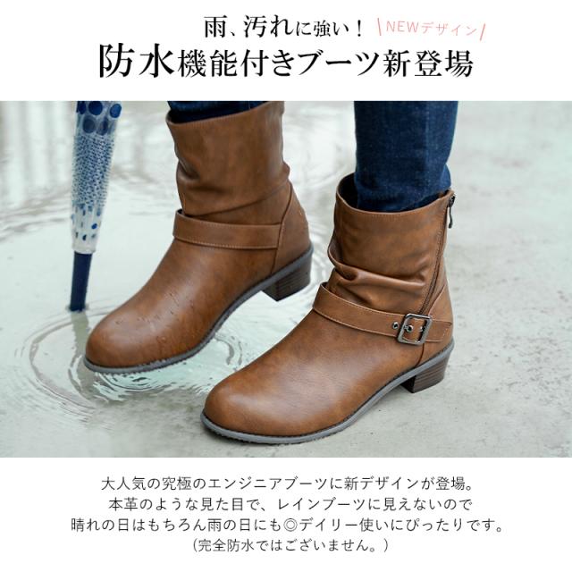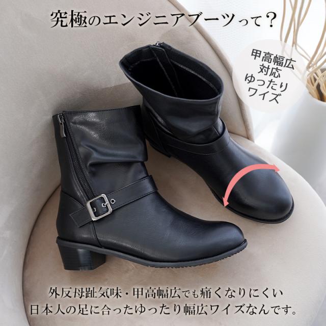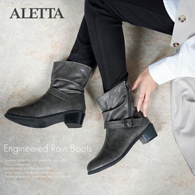レインブーツ エンジニアブーツ ALETTA 4.5cmヒール レディース 春 秋 冬 ショート 軽量 オシャレ くしゅくしゅ 防水 雨天兼用 外反母趾気味 甲高 幅広 長靴 防滑 抗菌 防臭 エナメル 本革風 スムース アレッタ