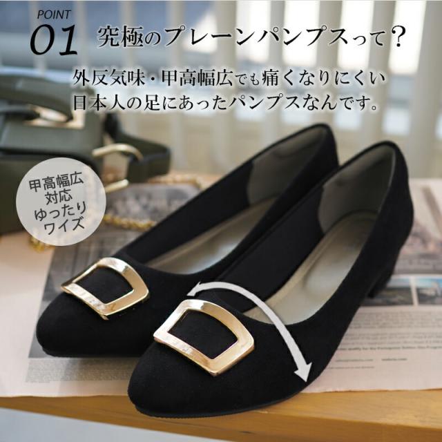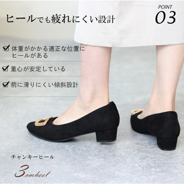 パンプス 痛くない 幅広 走れる 結婚式 黒 アーモンドトゥ 3cm チャンキーヒール バックル ローヒール 外反母趾気味 甲高 黒 ブラック 大きいサイズ 小さいサイズ ぺたんこ レディース 究極のプレーン アレッタ 入学式 卒業式 リクルート 柔らかい 送料無料 ALETTA