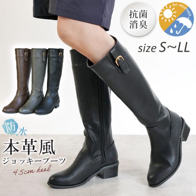 【防水機能付き 本革風ジョッキーブーツ】