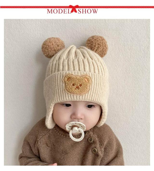 子供 くま 防寒帽子 赤ちゃん ベビー お散歩 ニット帽 赤ちゃん 春 耳保護 耳付き 暖かい ニットキャップ 保温 寒さ対策 お出かけ 防寒 くま耳 秋 くま 新生児 かわいい こども 冬 ベビー帽子 6ヶ月~3歳 可愛い 保育園 クリスマス