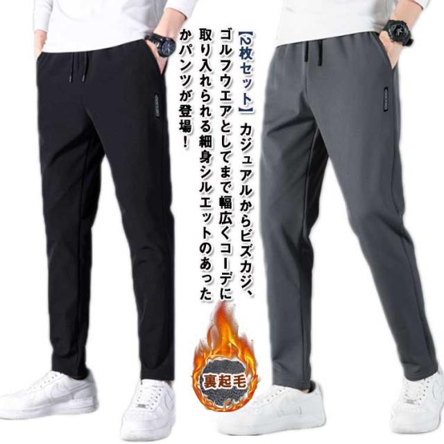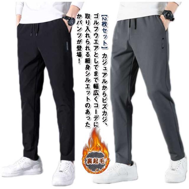 暖かい ストレッチ 【2枚セット】 九分丈 冬 メンズ スキニーパンツ あったか 秋冬 裏起毛 【2枚セット】 テーパード 裏起毛パンツ ボトムス 暖パン 伸縮性 細身 ズボン 無地 ゴルフパンツ 秋 ゴルフウエア アウトドア 登山 旅行
