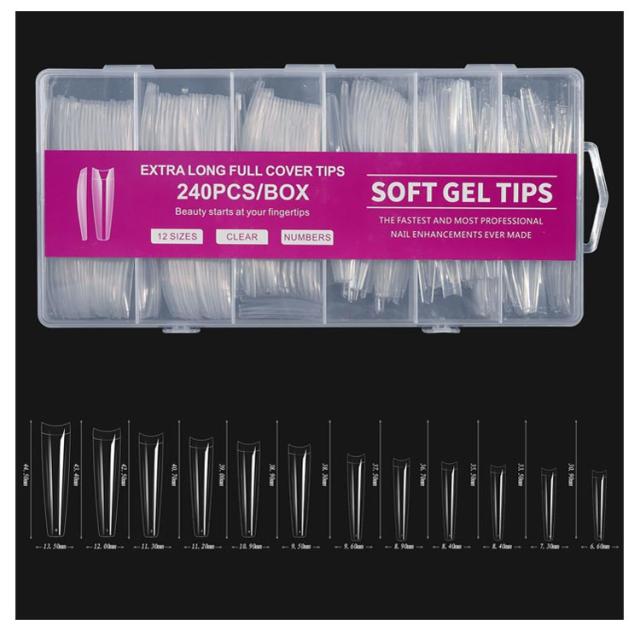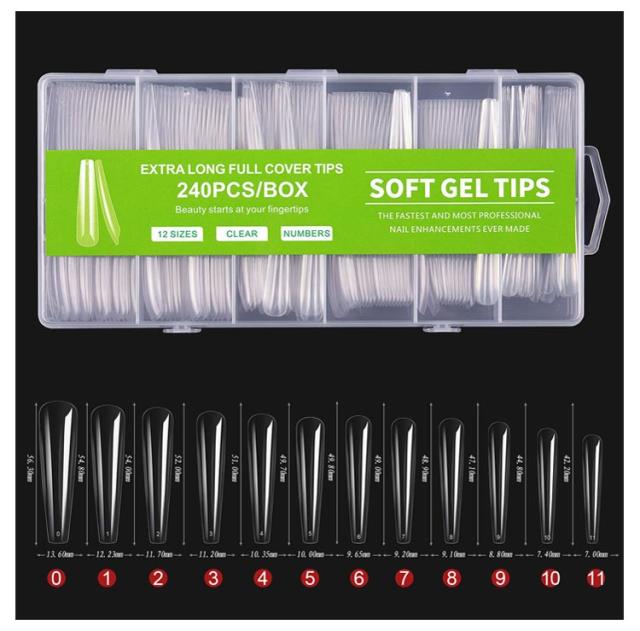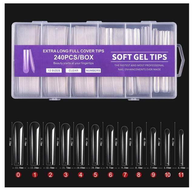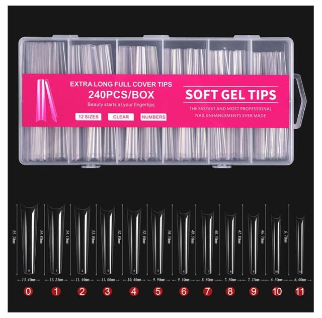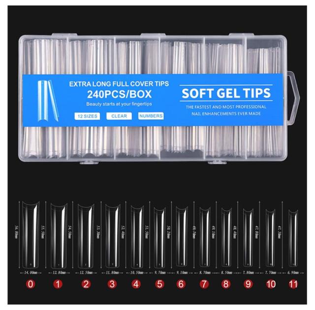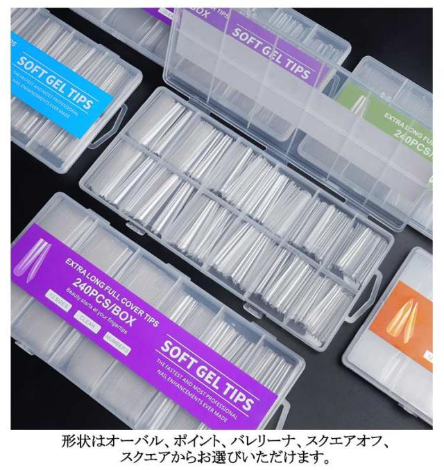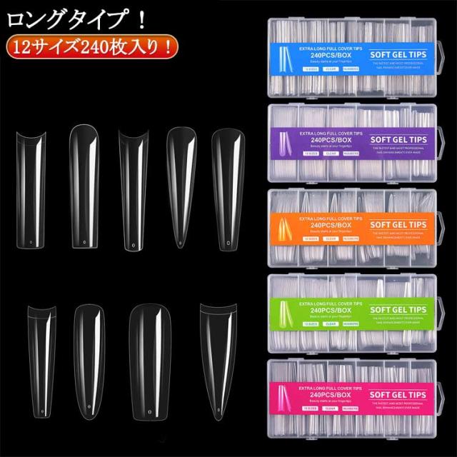 スクエア クリア ロング 240枚セット ネイルチップ ロングネイルチップ クリアネイルチップ ネイルチップ クリア クリアチップ フルカバー プレーン 練習用 サンプル