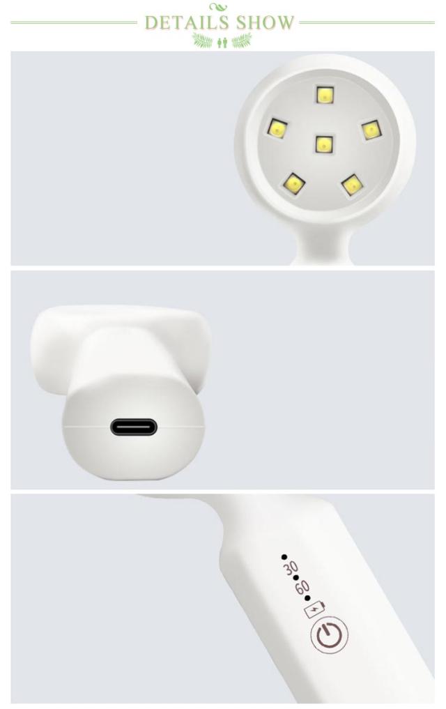 | サイズについての説明 | サイズ:192*60*12mm パワー:18W 充電口:Type-C 波長:365+405nm 入力:5V/0.5A 連続使用可能時間:60-180分 LED:6本 |