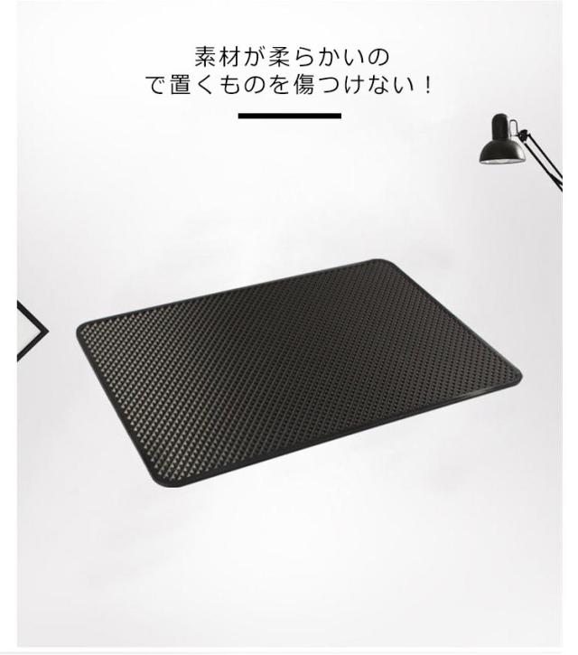 | 携帯電話や煙草、小物等を車のダッシュボードの上に置く事が出来る便利な滑り止めシートです。 高級なシリコンを採用し、滑り止めや粘着力が強く、適当な場所に置いて、自然に粘着します。 お手入れ簡単!汚れても、水洗いで何度も繰り返し使えます。 素材が柔らかいので置くものを傷つけない! 冷蔵庫やガラス面などにも貼り付けられるので、キッチン周りやテーブルの小物管理もできます。 | |