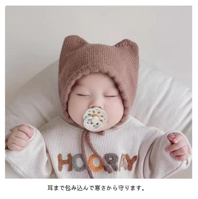 | 防寒対策に!猫耳付きが可愛いベビーニット帽 耳まで包み込んで寒さから守ります。 柔らかく適度な伸縮性で快適な着用感。 アゴ紐付きなので脱げる心配もなく着脱も簡単! 寒い日はもちろん、秋や春の肌寒い季節にも◎ どんな服装にも合わせやすい、耳付きニット帽です。 これ1つで、あっという間におしゃれ感アップ! 出産祝いや誕生日の贈り物にもおすすめです。 | |