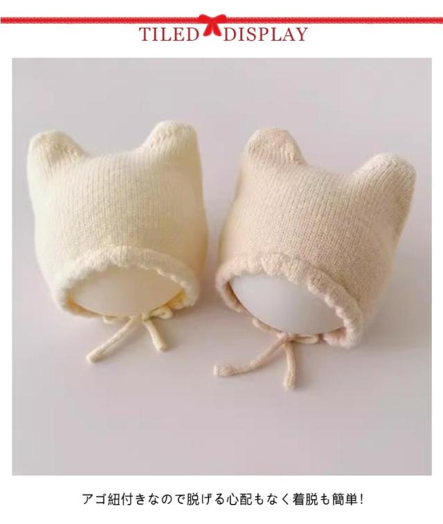 女の子 ニット帽 新生児 ねこ耳 冬 ベビー帽子 猫 帽子 男の子 ねこ こども 猫耳 赤ちゃん ベビー 秋冬 可愛い 寒さ対策 お出かけ 紐付き あごひも 月齢 赤ちゃん 秋 フォト 男女兼用 新生児 幼児 キッズ帽子 ニットキャップ プレゼント