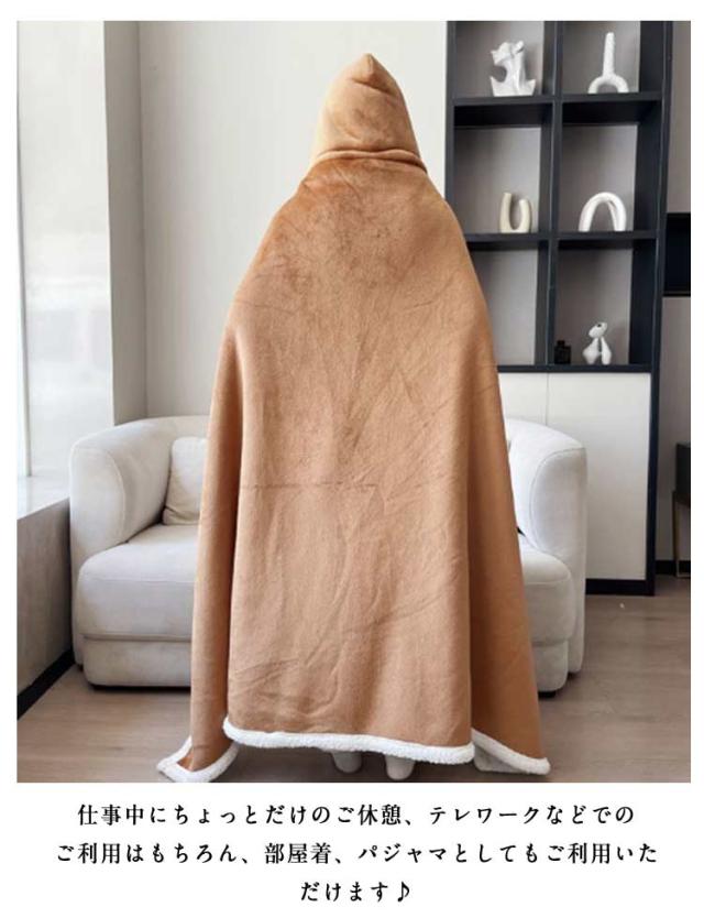 | 寒い冬にも暖かい!もこもこ着る毛布 毛布のような厚手の生地を使用しています。 ふわふわ、もこもこ、柔らかい着心地で肌触りが良い。 仕事中にちょっとだけのご休憩、テレワークなどでのご利用はもちろん、部屋着、パジャマとしてもご利用いただけます♪ 保温性も高いので、寒くなり始めた秋・冬におすすめです。 可愛いデザインで、プレゼントとしても素敵です。 | |