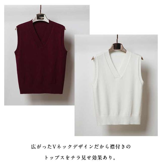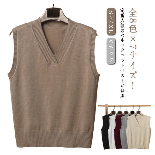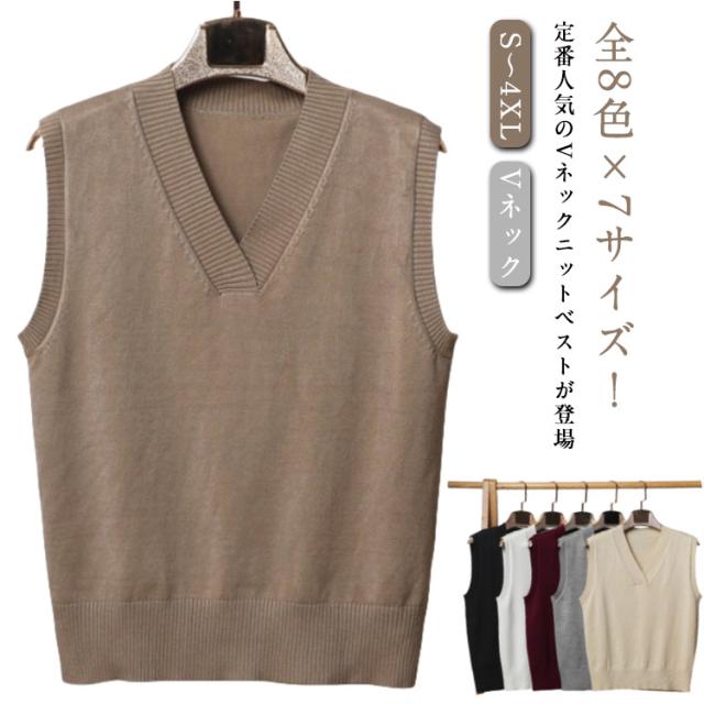 レディース Vネック ニットベスト ニットトップス プルオーバー ニットベスト ニット ノースリーブニット トップス ベスト 重ね着 レイヤード シンプル 無地 ゆったり 大きいサイズ スクールベスト 秋 冬 かわいい Vネック 通学 通勤 ギフト