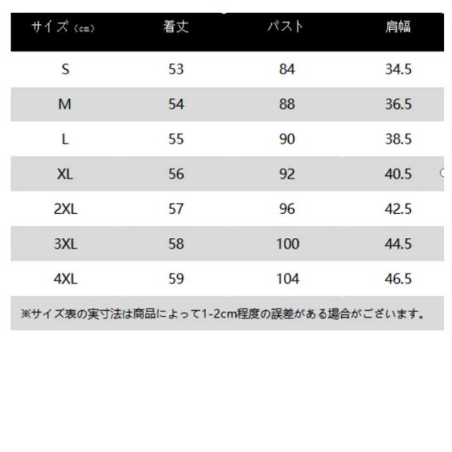 | サイズ | S M L XL 2XL 3XL 4XL |
