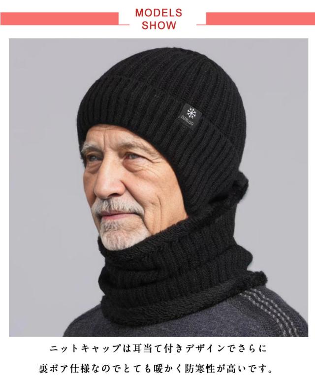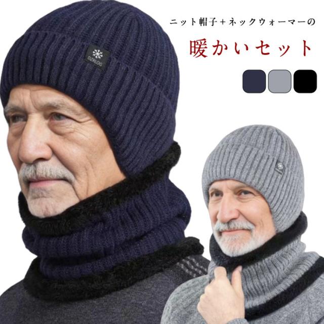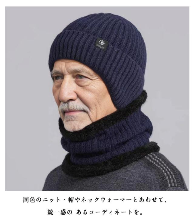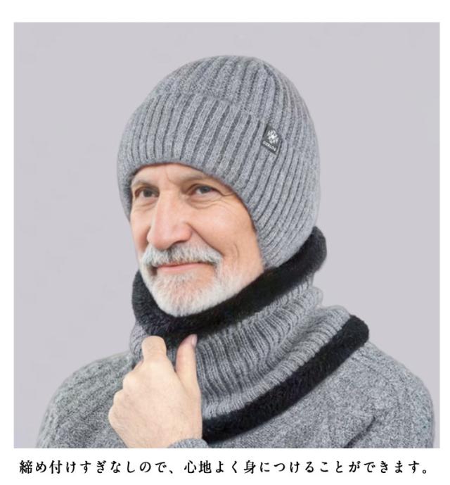 防寒 ニットキャップ ネックウォーマーセット マフラー 耳あて付き帽子 ニット帽 ケーブル編み スヌード 秋冬 裏ボア 暖かい メンズ 冬 ファッション 裏起毛 大人 男性 防風 ニット帽 無地 シンプル シニア 冷え対策 送料無料 スキー スノボ 防寒 クリスマスギフト