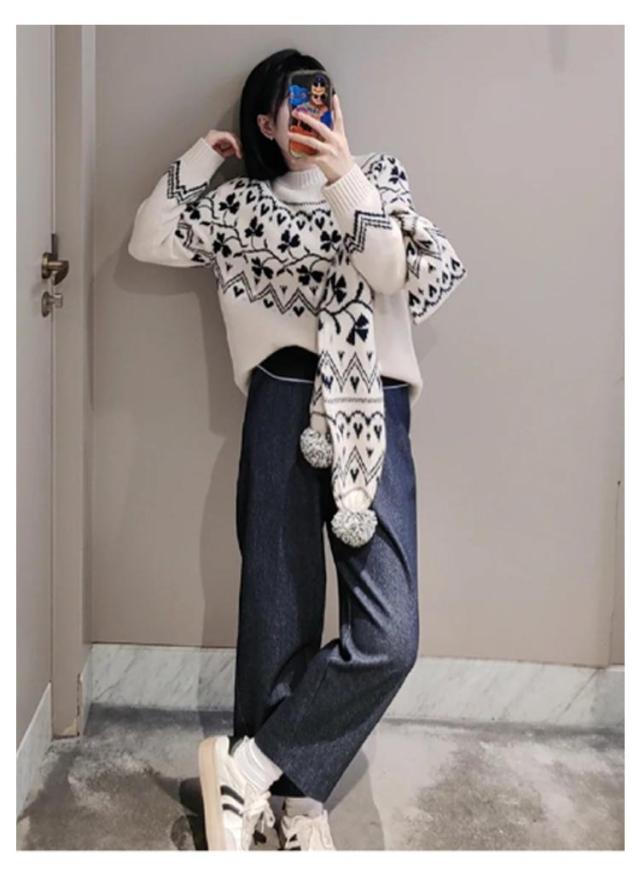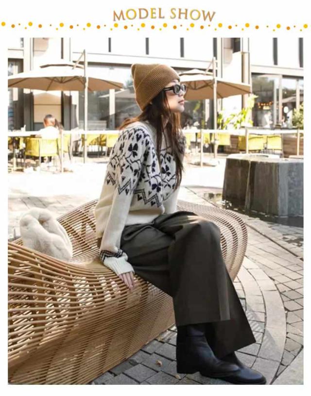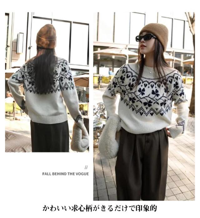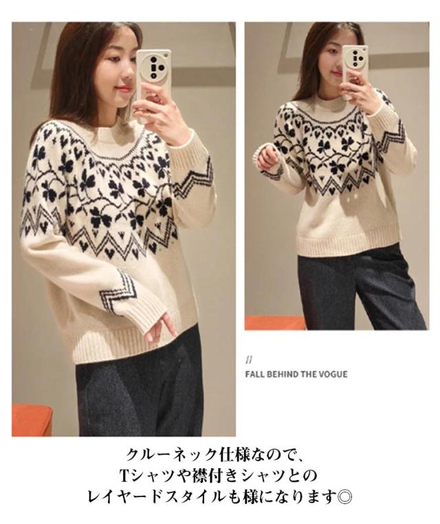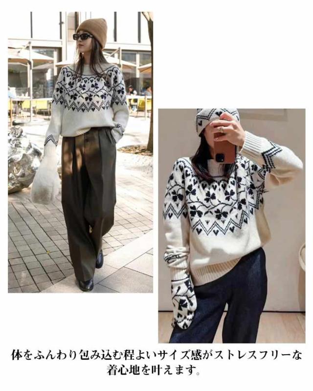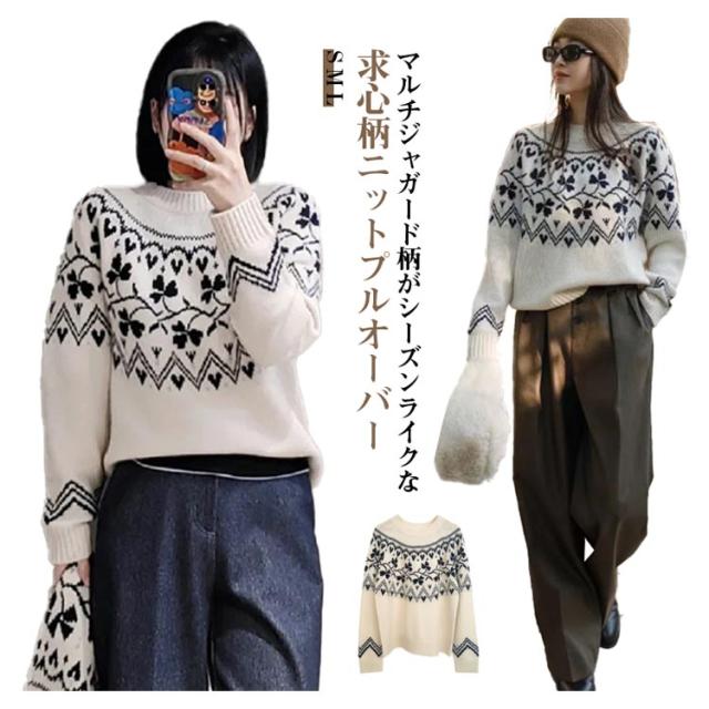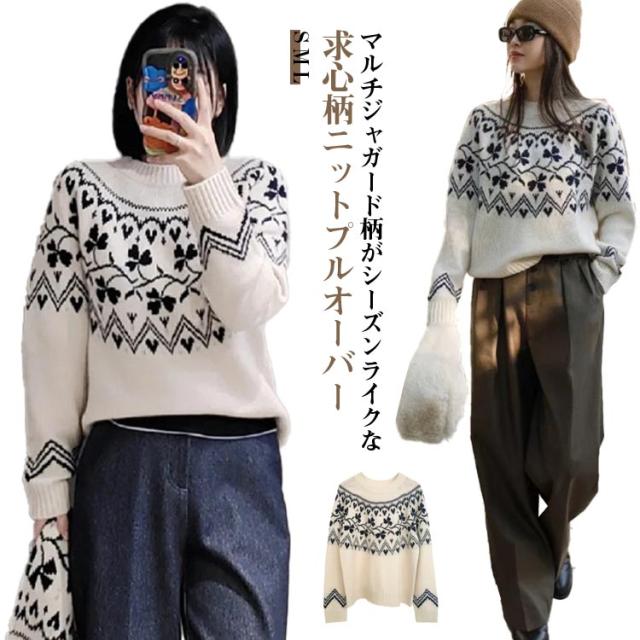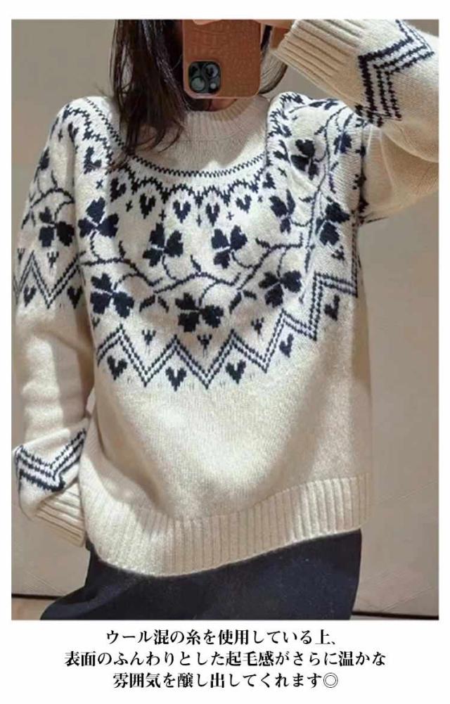 ニット ニット ウール混 秋冬 トップス ニットプルオーバー レディース セーター 求心柄 求心柄ニット ノルディック柄 ジャガード 厚手 あったか 暖かい ニットトップス ゆったり かわいい おしゃれ 大きいサイズ 大人カジュアル 30代 40代 50代