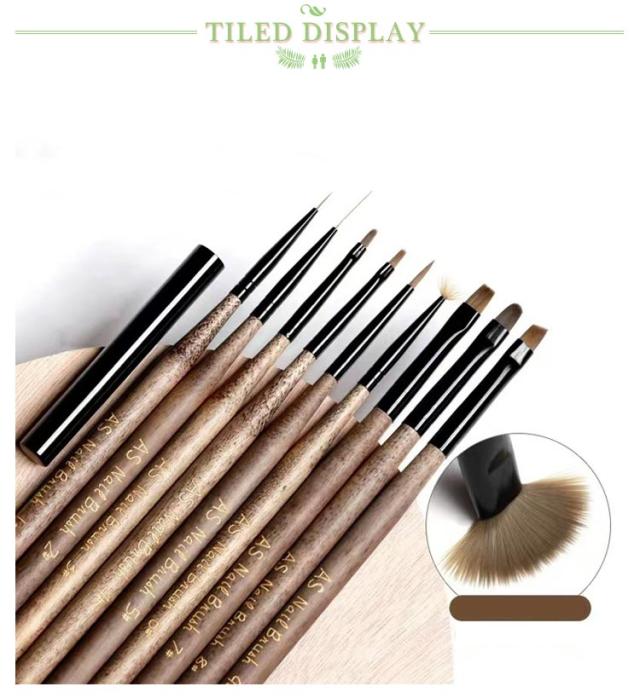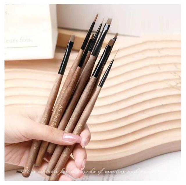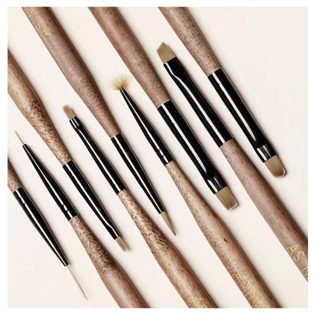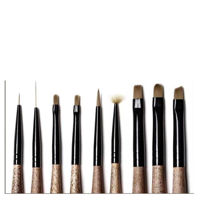 | 9本入り 木製のジェルネイルブラシ 持ちてが細くスタイリッシュな筆になっています | |