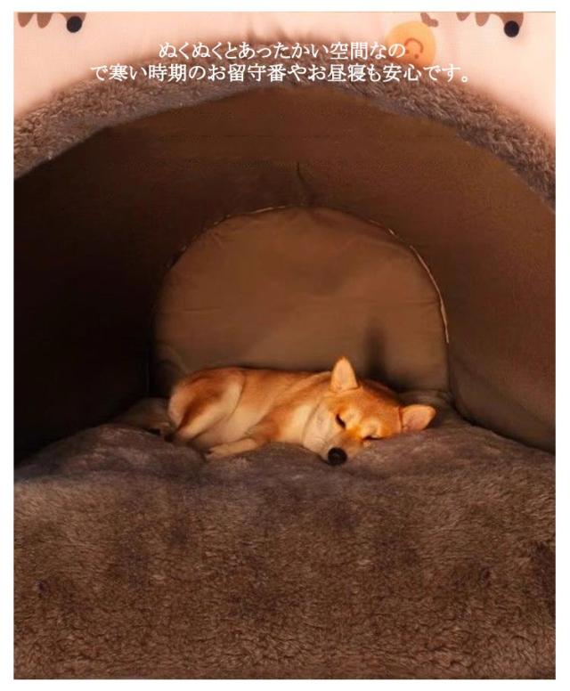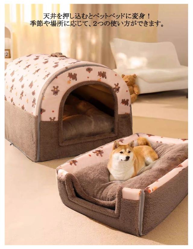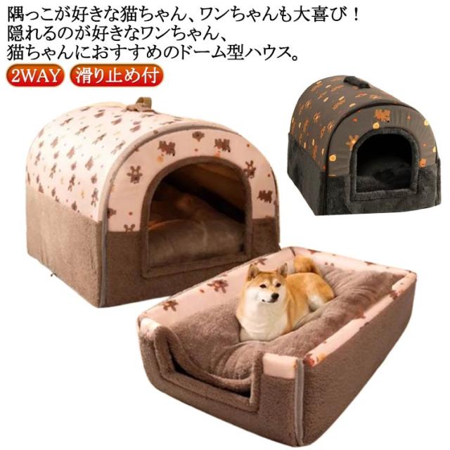 ふんわり 冬寒さ対策 ベッド ペットハウス ソファ ハウス 2WAY ドーム ペットソファ クッション ドームハウス ベッド ぐっすり眠れる ペットハウス クッション 寝袋 ホカホカ 犬用ベッド 犬のベッド 猫 保温 洗える ブラウン
