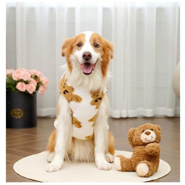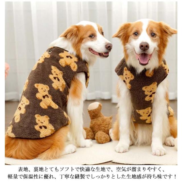 可愛い フリース 可愛い ペットウエア かわいい 暖かい 秋冬 モコモコ タンクトップ 袖なし ルームウェア もこもこ トレーナー ドッグウエア 柔らかい クマ柄 暖かい 抜け毛防止 ノースリーブ 部屋着 ふわふわ 防寒 パジャマ 犬の服 あったか 犬服 秋