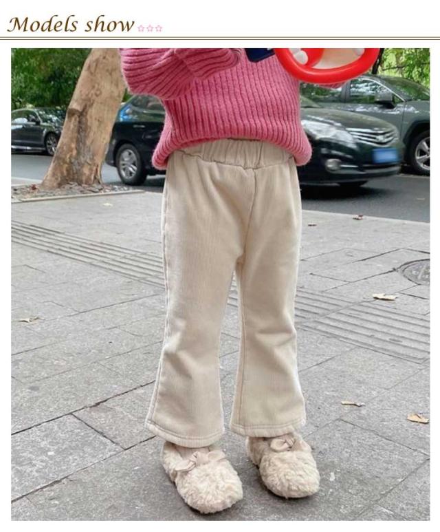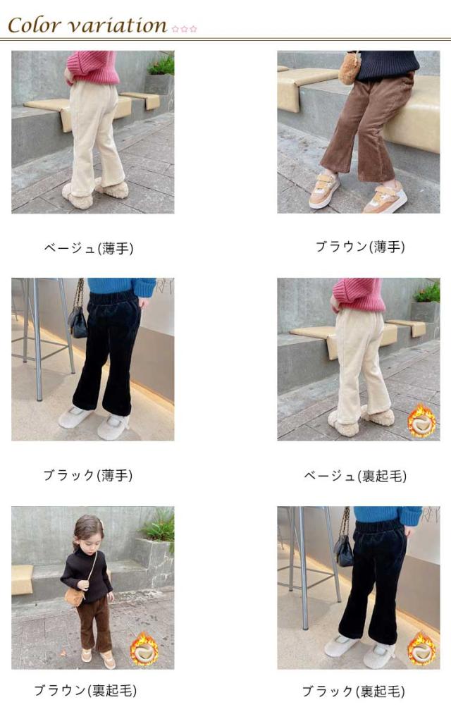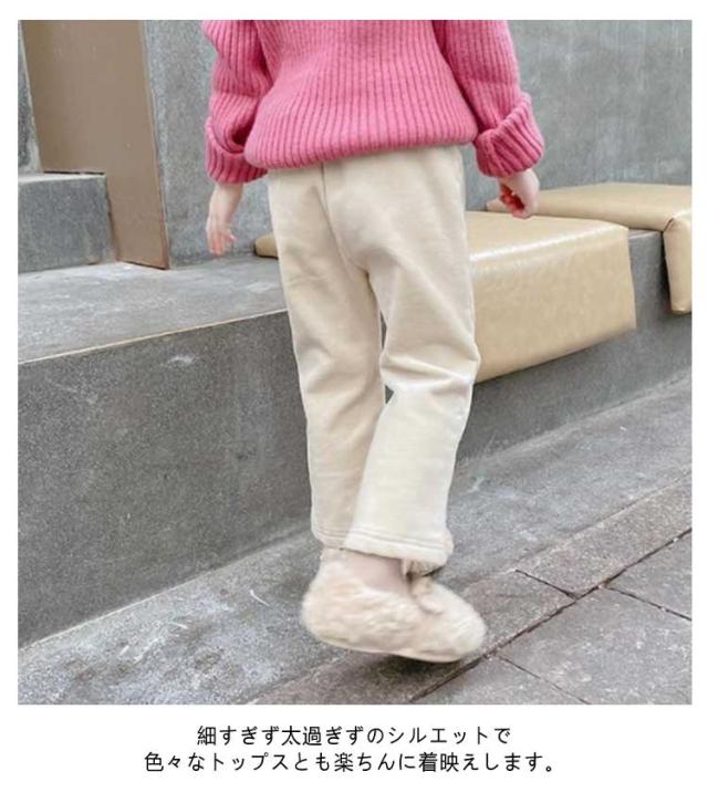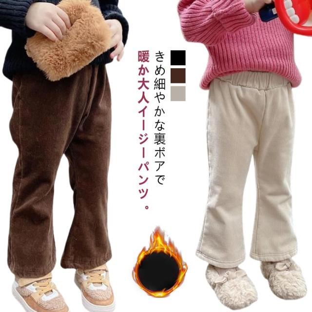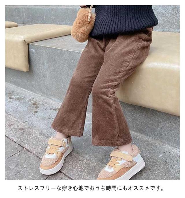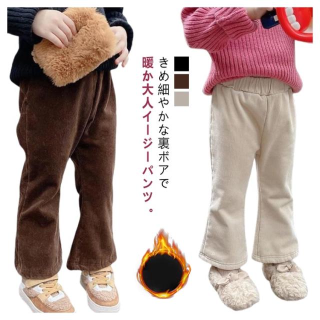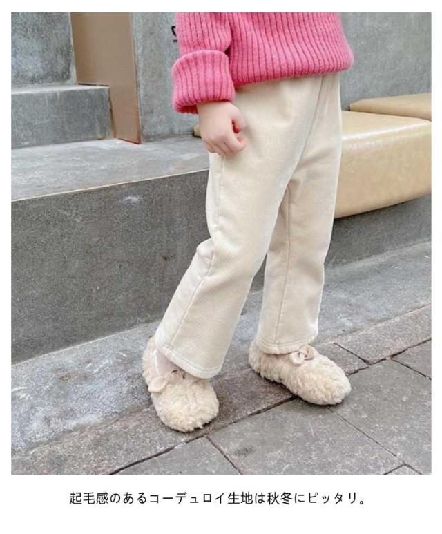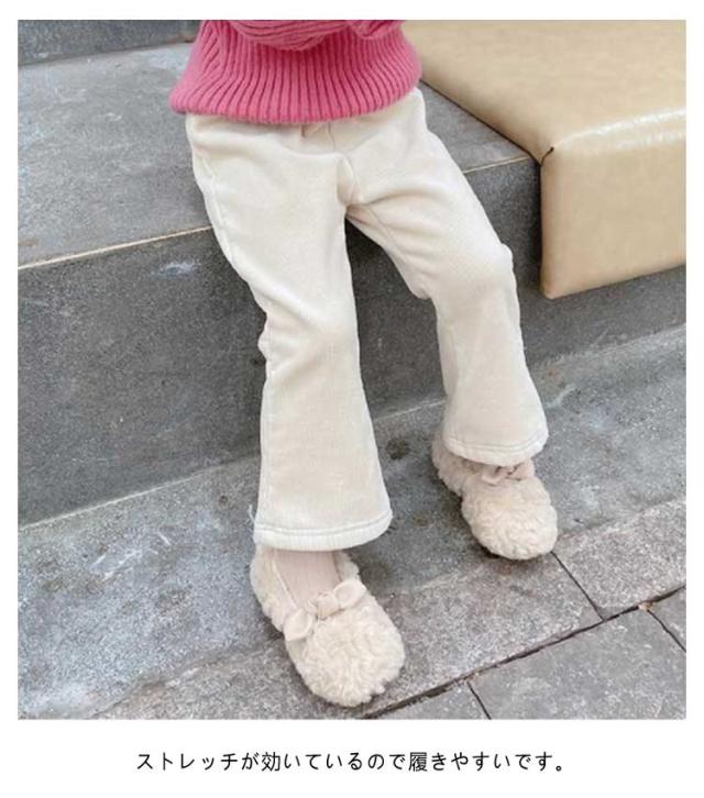 子ども服 裏起毛パンツ キッズ リブ コーデュロイ セミフレア フレアパンツ ロングパンツ 裏起毛フレアパンツ 長ズボン ブーツカット ボトムス パンツ 女の子 コーデュロイ ストレッチ ウエストゴム 選べる2タイプ カジュアル 防寒 脚長 ぬくぬく 秋