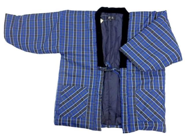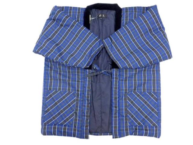 男物 あったか お風呂上り 半天 伴天 半纏 袢纏 久留米調 ポンチョ 伴天 フリーサイズ 紺地 高麗屋格子 柄 No.501