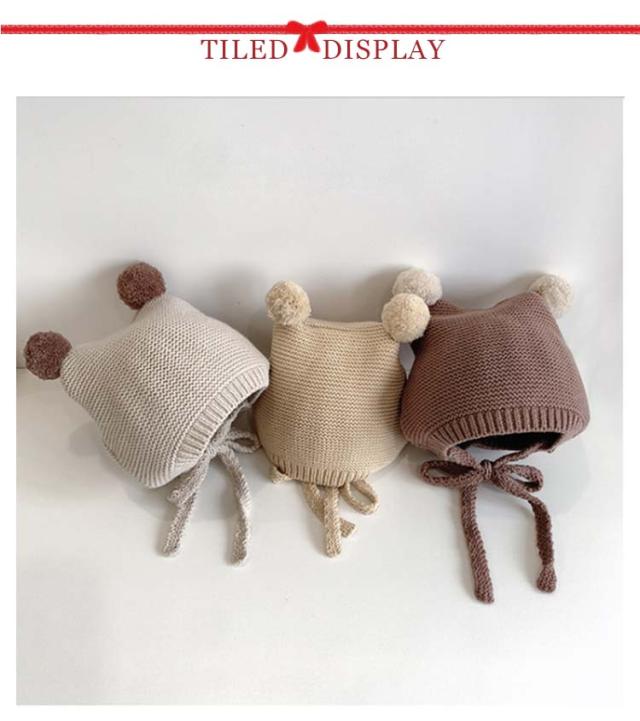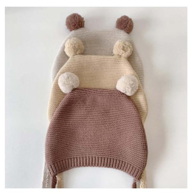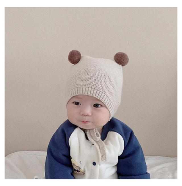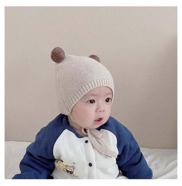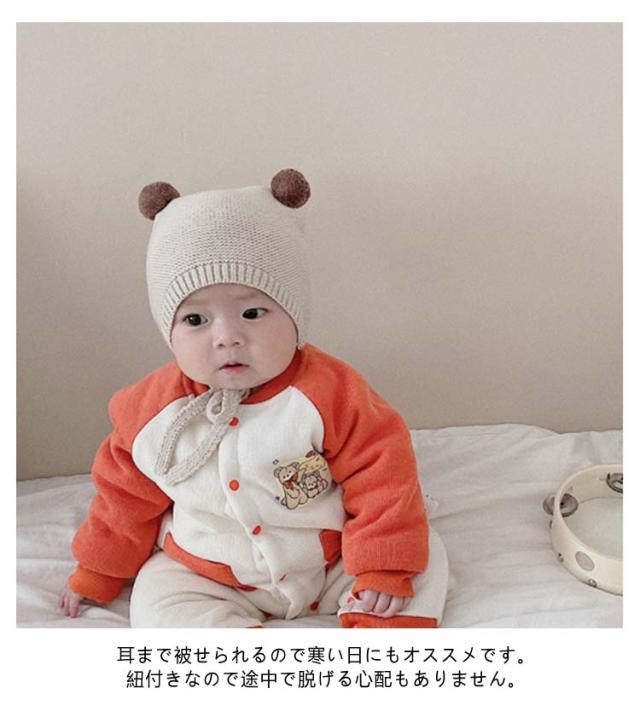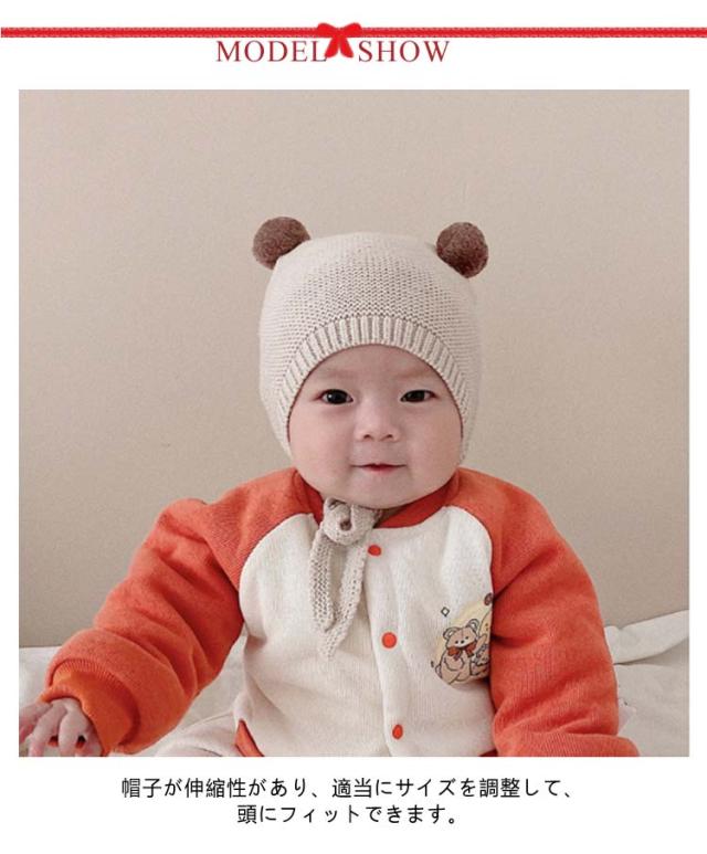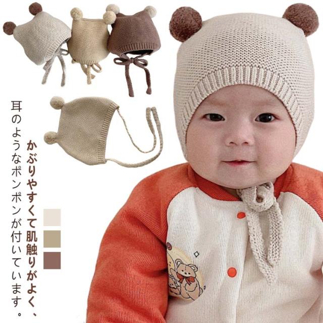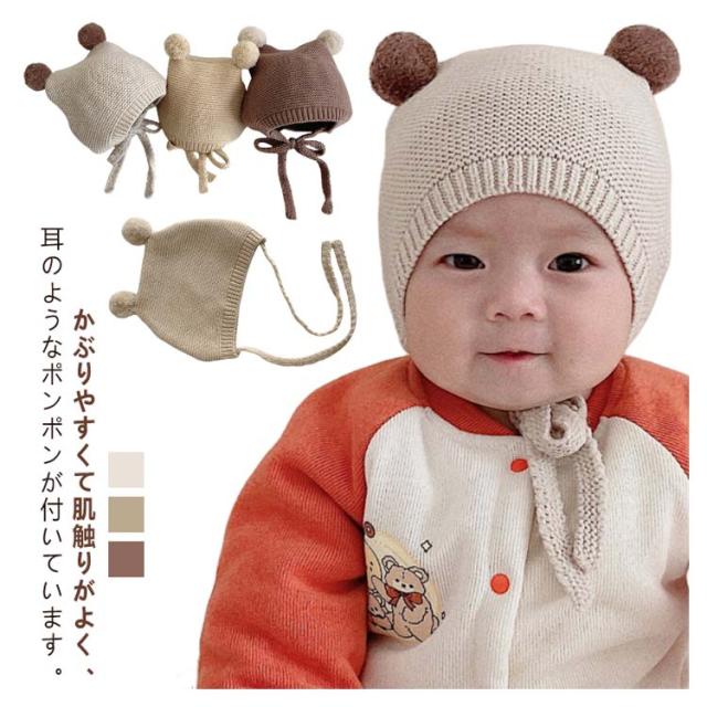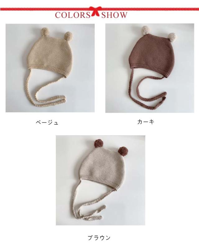 キッズ 紐付き 男の子 耳当て ニット帽 くま耳 毛糸 耳付き ニットキャップ ニット帽 寒さ対策 あごひも 新生児 防寒 可愛い おしゃれ ベビー 子供服 赤ちゃん 防寒 ニット 帽子 ポンポン付き 秋 冬 0歳 1歳 2歳 44-50cm