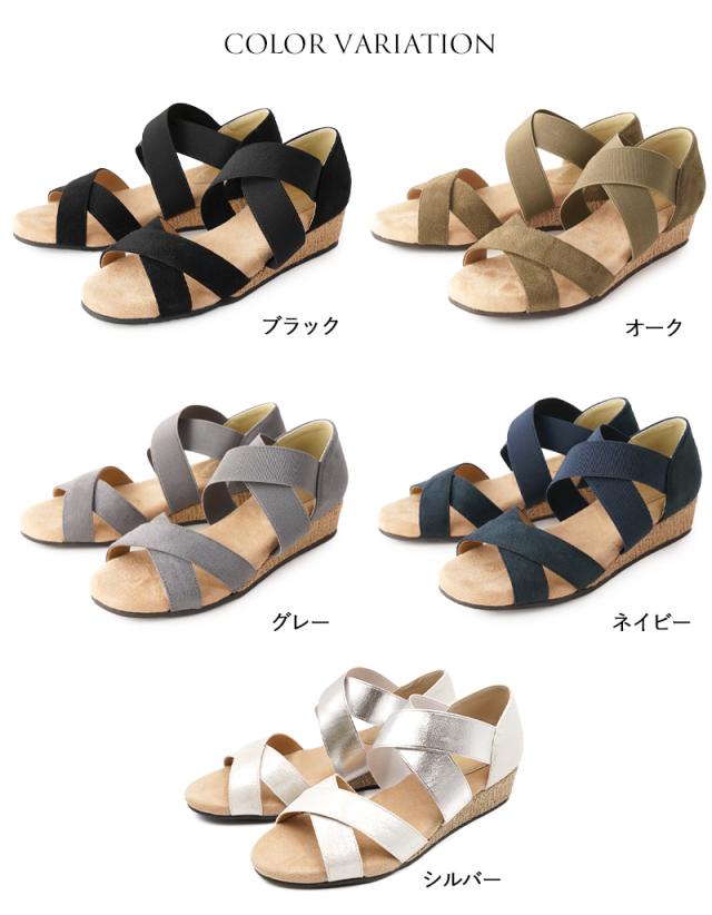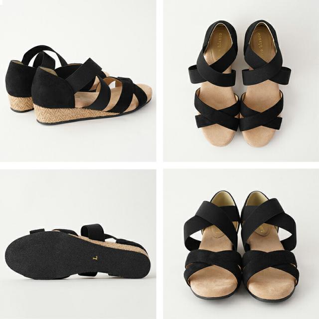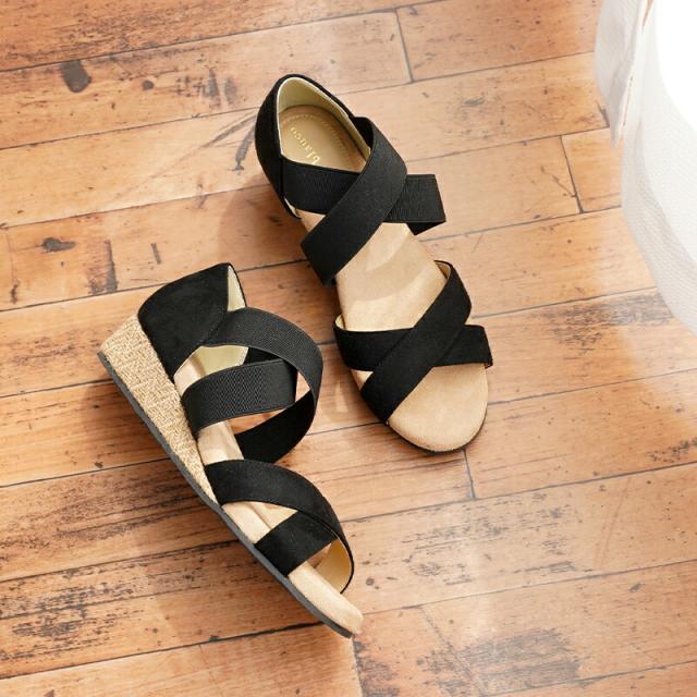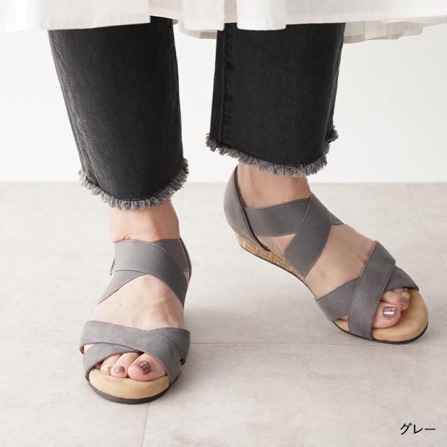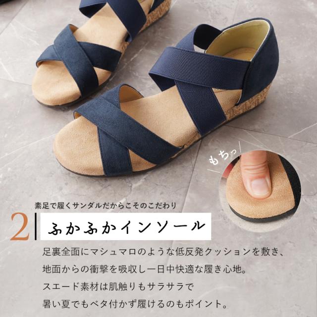 サンダル もちもちクッション ゴムサンダル 3.5cmヒール ウェッジサンダル レディース ジュート ブラック かわいい シンプル 痛くない 歩きやすい 疲れない 送料無料