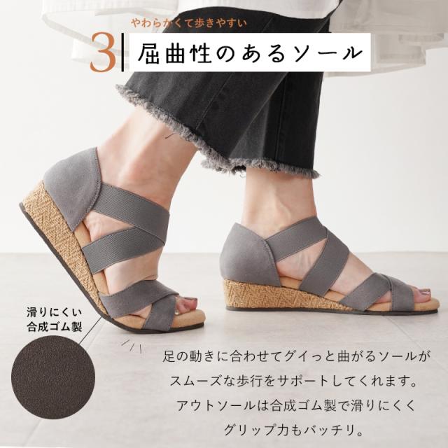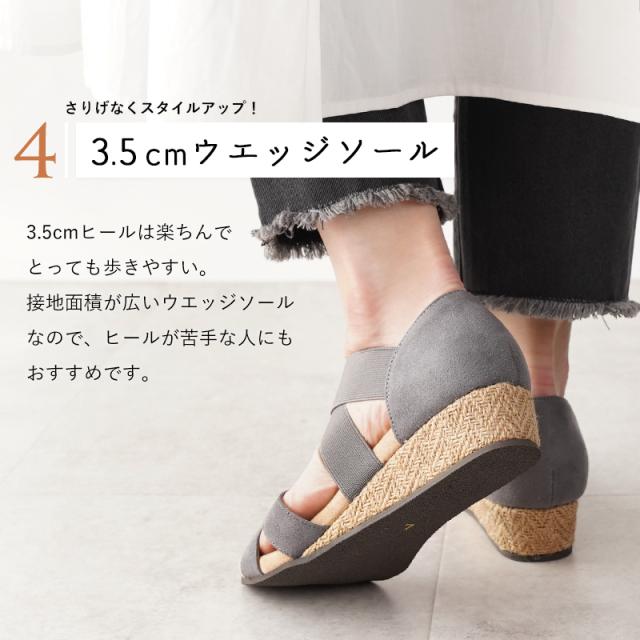 ・約3.5cmのウエッジソールは楽ちんでとても歩きやすく、ヒール靴より接地面積が広いので安定感があります。