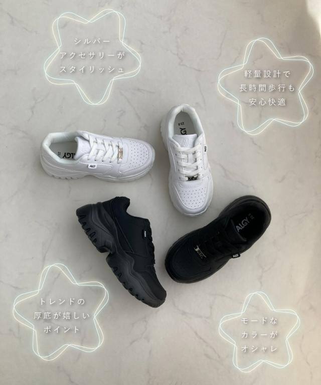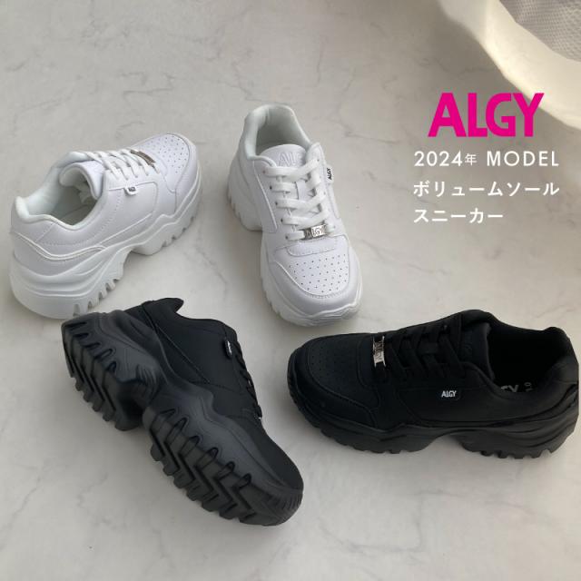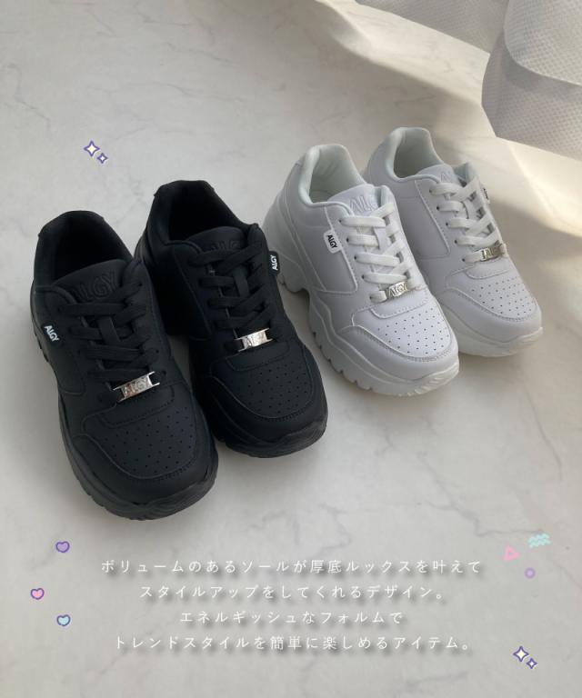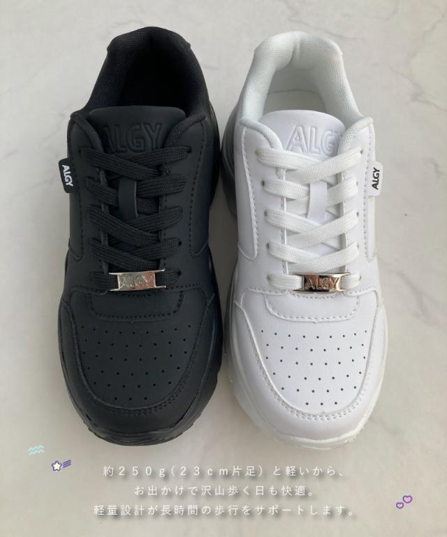 ALGY アルジー 2024新作 スニーカー 厚底 キッズ 5.5cmヒール 女の子 軽量 ボリュームソール ブラック ホワイト 黒 白 ジュニア かわいい シューズ 靴 小さいサイズ ダンス ティーンズ レディース 韓国風 小学生 中学生 スポーツ 通学 お出かけ