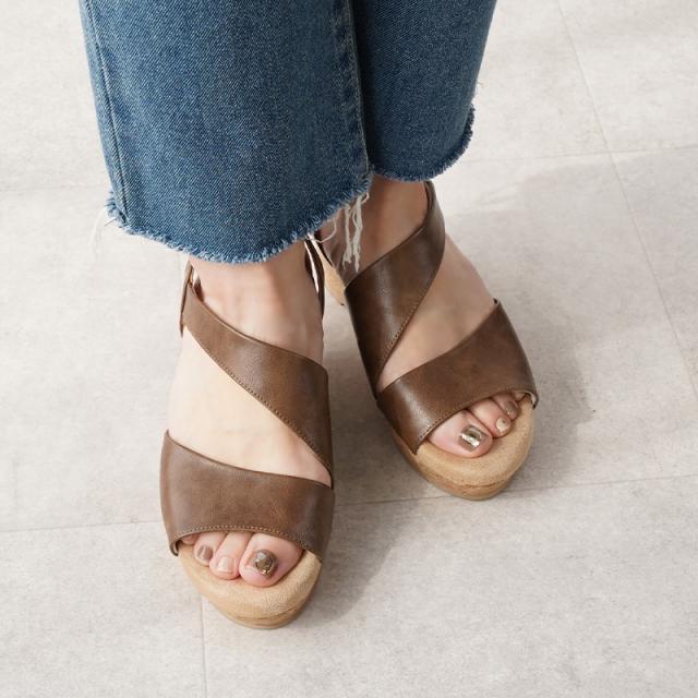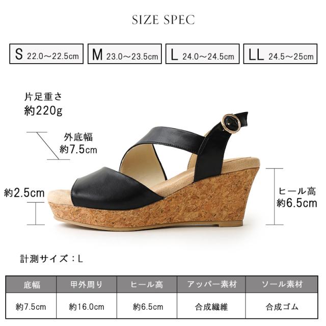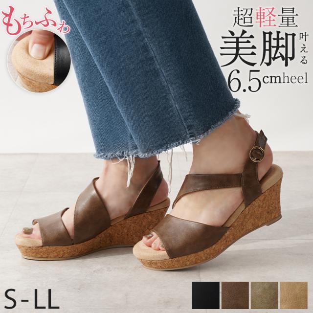 サンダル レディース ウエッジソール 厚底 6.5cmヒール 美脚 靴 歩きやすい おしゃれ ふかふか 極厚クッションインソール 軽量 軽い 楽ちん 疲れにくい 痛くない カジュアル 全4色 ブラック ブラウン ベージュ グレー S M L LLサイズ 春夏