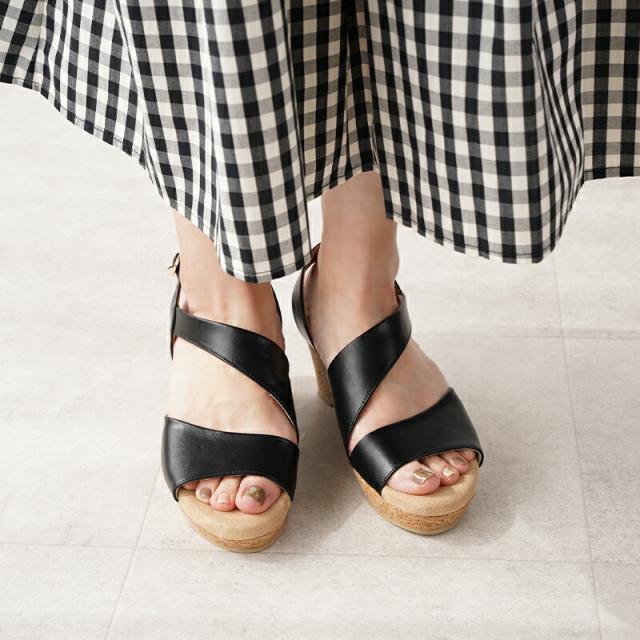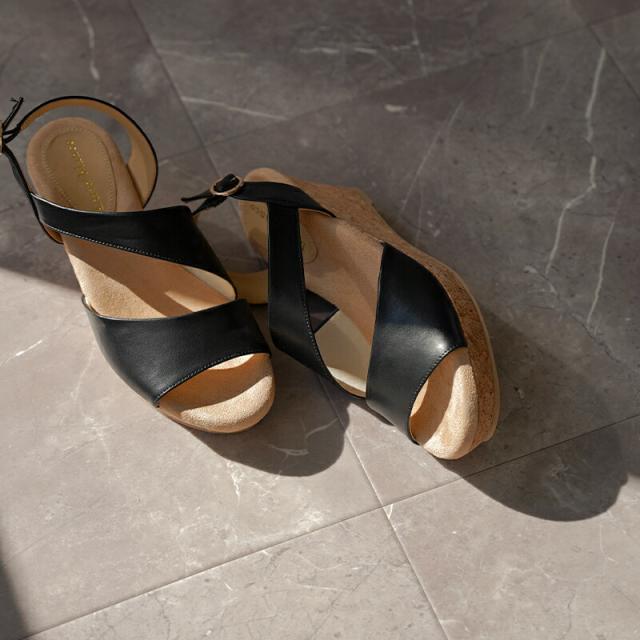 ・6.5cmのヒールがスタイルアップを実現。ウェッジソールだからヒールが高くても接地面が多く安定して歩きやすい。ストームに高さがあるので高低差を感じにくく、ヒールが苦手な人にもおすすめです。