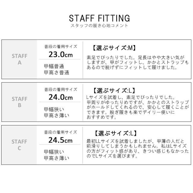 ・片手でサッと履けるゴム付きバックストラップ。ホールド感がありながら、ゴムで伸びるので足入れに手間取りません。ベルトは3穴付きなのでお好みの長さに調節することが可能です。