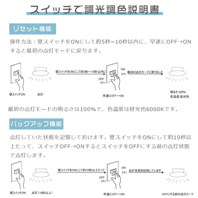※壁スイッチのみの使用となります。壁スイッチのない場所ではON/OFFできません。